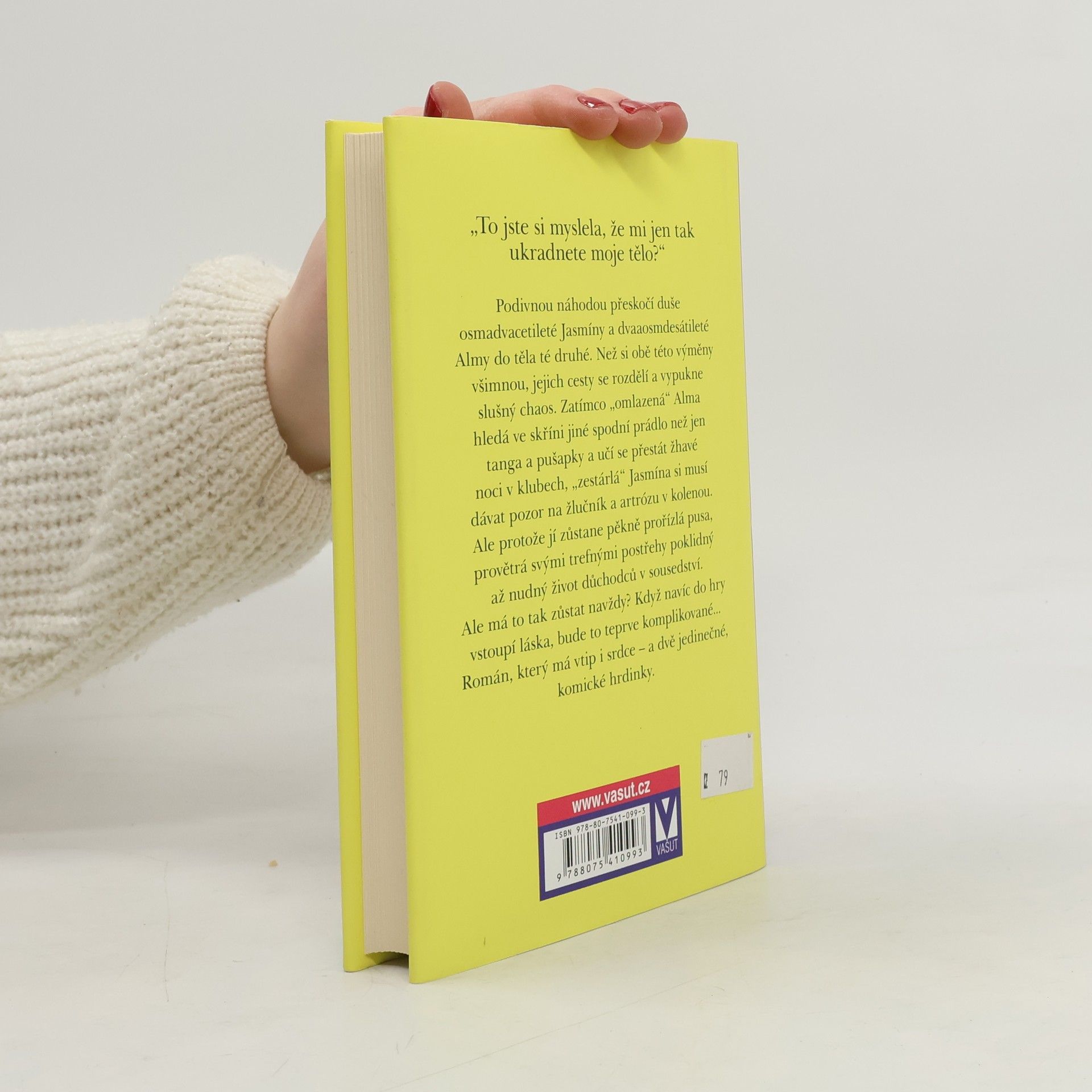 Při nárazu v tramvaji přeskočí duše osmadvacetileté Jasmíny a dvaaosmdesátileté Almy do těla té druhé. Než si obě této výměny všimnou, jejich cesty se zase rozdělí a vznikne slušný chaos. Proti své vůli se obě ženy pokoušejí zorientovat v životě té druhé. Není to vůbec snadné, když nemáte ani pořádné spodní prádlo, jen podivné šňůrky a „pušapky“ (jak si stěžuje „omlazená“ Alma), když musíte mezi lidi s chlupatýma nohama, protože tu není epilátor (jak se rozčiluje „zestárlá“ Jasmína) a když vyhazovač v klubu vám se soucitným úsměvem doporučuje taneční hodiny pro důchodce. Obě zjišťují, že svůj každodenní život mohou zvládnout jedině tak, když si vzájemně pomůžou. Ale má život v těle té druhé pokračovat už napořád? Když pak ještě do hry vstoupí láska, bude to teprve komplikované...