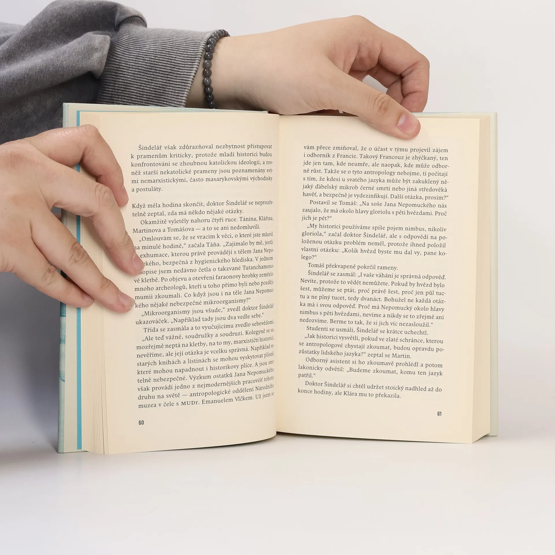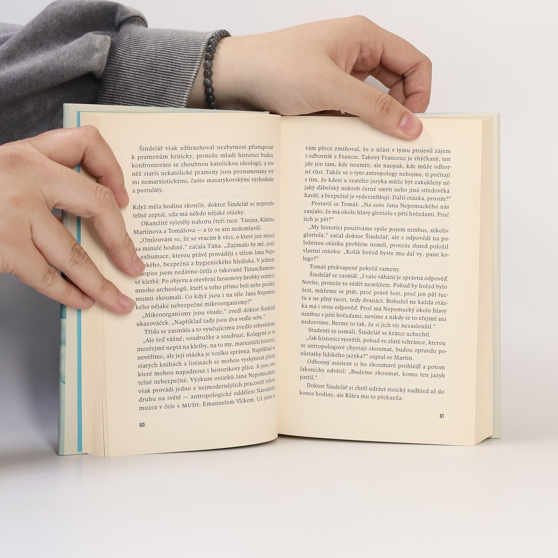 Středověká legenda o Janu Nepomuckém se prolíná s fikcí i skutečnými historickými událostmi roku 1972. Okupační sovětská armáda se v normalizačním Československu cítí jako doma a v podnicích, úřadech a školách právě skončily stranické prověrky a nastala vlna propouštění. Zato u Státní bezpečnosti se dá vybudovat skvělá kariéra. Do Prahy se ze slovenského hornického městečka Handlová stěhuje rodina Júliuse Dobrotky, který se touží podílet na velké, ostře sledované stavbě československo-sovětského přátelství — pražského metra. Jeho devatenáctiletého syna Tomáše však mnohem více zajímá historie. Se svými novými spolužáky Táňou, Martinem a Klárou z pražské filozofické fakulty poznávají Prahu, poslouchají bigbít, na přednáškách se noří do středověkých sporů a zkoumají legendu o Janu Nepomuckém. Dychtivě přitom očekávají, zda se ve zlatém relikviáři, který má být otevřen při rekonstrukci Svatovítského chrámu, opravdu ukrývá zachovalý jazyk tohoto středověkého světce. Dokonce kvůli tomu osloví mladého francouzského antropologa, stážistu v Národním muzeu, a chystají se s ním udělat rozhovor do univerzitního časopisu. Netuší však, že jejich počínání zpovzdálí sleduje ještě někdo další.