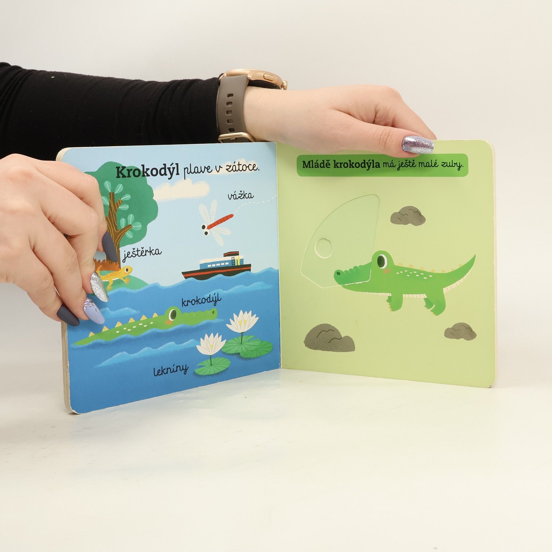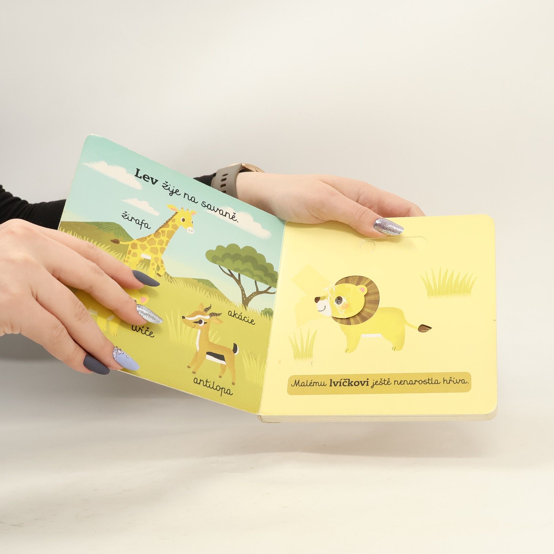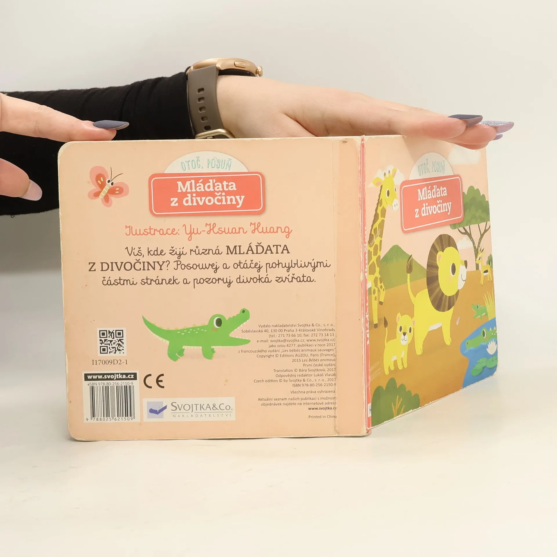 Víš, kde žijí různá mláďata z divočiny? Posouvej a otáčej pohyblivými částmi stránek a pozoruj divoká zvířata! Lvi žijí na savaně. Koho dalšího tam lvíče může potkat? Kdy mu konečně naroste taková hříva, jakou má táta? I malé hádě jednou povyroste. Zatím se plazí džunglí. V zátoce na tebe čeká krokodýl a v lese pro změnu medvěd. Nespadne medvídě ze stromu? Neboj, otevři knížku a uvidíš! Interaktivní knížka pro nejmenší rozvíjí díky pohyblivým prvkům jemnou motoriku dítěte a předává přirozenou formou poznatky o životě divokých zvířat.
