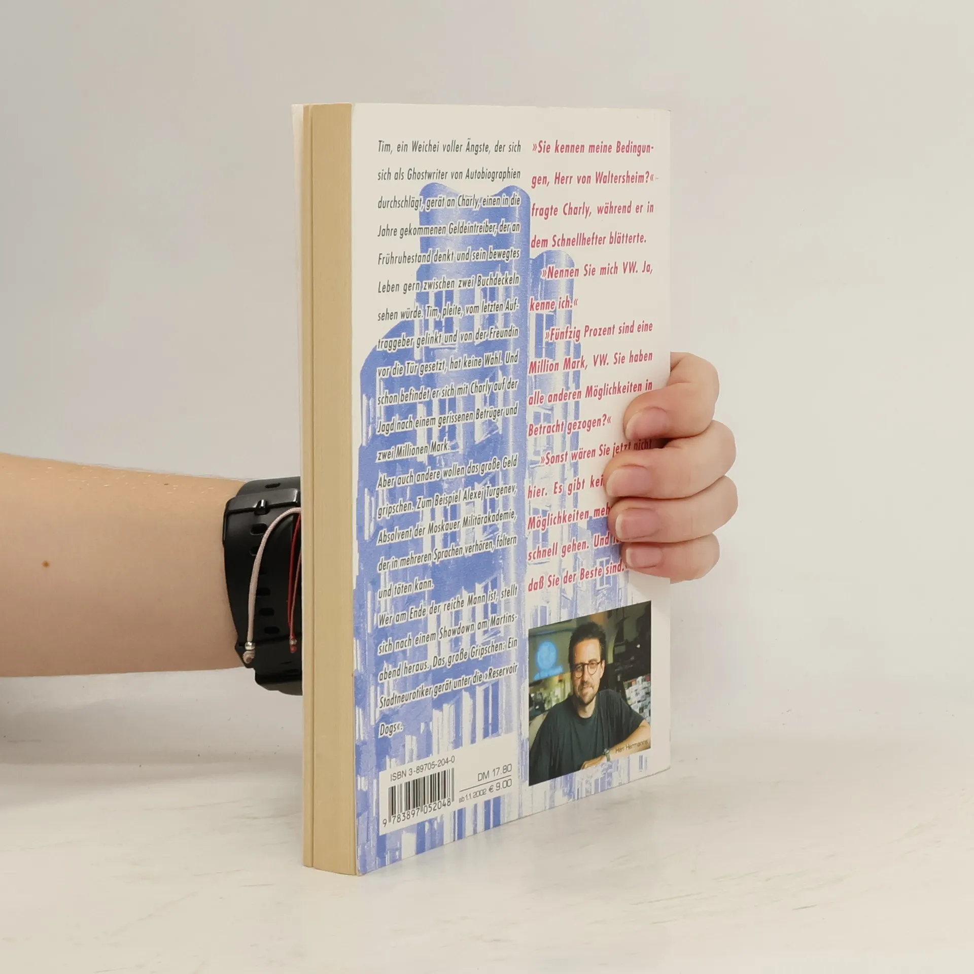 Tim, ein Weichei voller Ängste, der sich als Ghostwriter von Autobiografien durchschlägt, gerät an Charly, einen in die Jahre gekommenen Geldeintreiber, der an Frühruhestand denkt und sein bewegtes Leben gern zwischen zwei Buchdeckeln sehen würde. Tim, pleite, vom letzten Auftraggeber gelinkt und von der Freundin vor die Tür gesetzt, hat keine Wahl. Und schon befindet er sich mit Charly auf der Jagd nach einem gerissenen Betrüger und acht Millionen Mark. Aber auch andere wollen das große Geld gripschen. Zum Beispiel die Turgenjev-Brüder, die leidenschaftliche Quentin Tarantino-Fans sind leider nicht nur theoretisch. Wer am Ende der reiche Mann ist, stellt sich nach einem wahnwitzigen Showdown am Martinsabend heraus. Das große Gripschen: Ein Stadtneurotiker gerät unter die Reservoir Dogs.