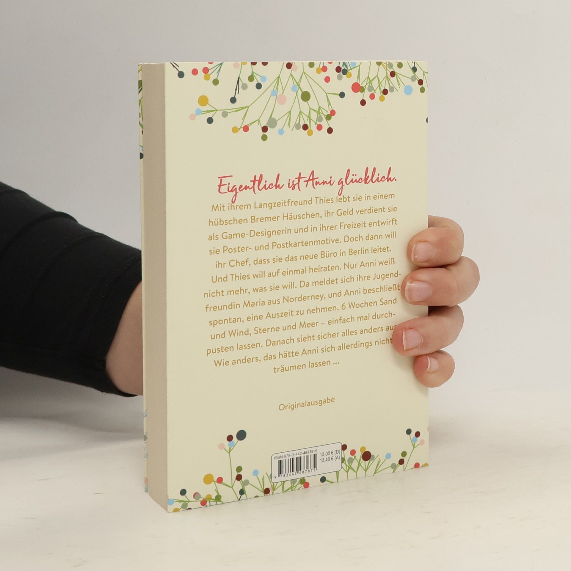 Eigentlich ist Anni glücklich. Mit ihrem Langzeitfreund Thies lebt sie in einem hübschen Bremer Häuschen, ihr Geld verdient sie als Game-Designerin und in ihrer Freizeit entwirft sie Poster- und Postkartenmotive. Doch dann will ihr Chef, dass sie das neue Büro in Berlin leitet. Und Thies will auf einmal heiraten. Nur Anni weiß nicht mehr, was sie will. Da meldet sich ihre Jugendfreundin Maria aus Norderney, und Anni beschließt spontan, eine Auszeit zu nehmen. 6 Wochen Sand und Wind, Sterne und Meer – einfach mal durchpusten lassen. Danach sieht sicher alles anders aus. Wie anders, das hätte Anni sich allerdings nicht träumen lassen ...