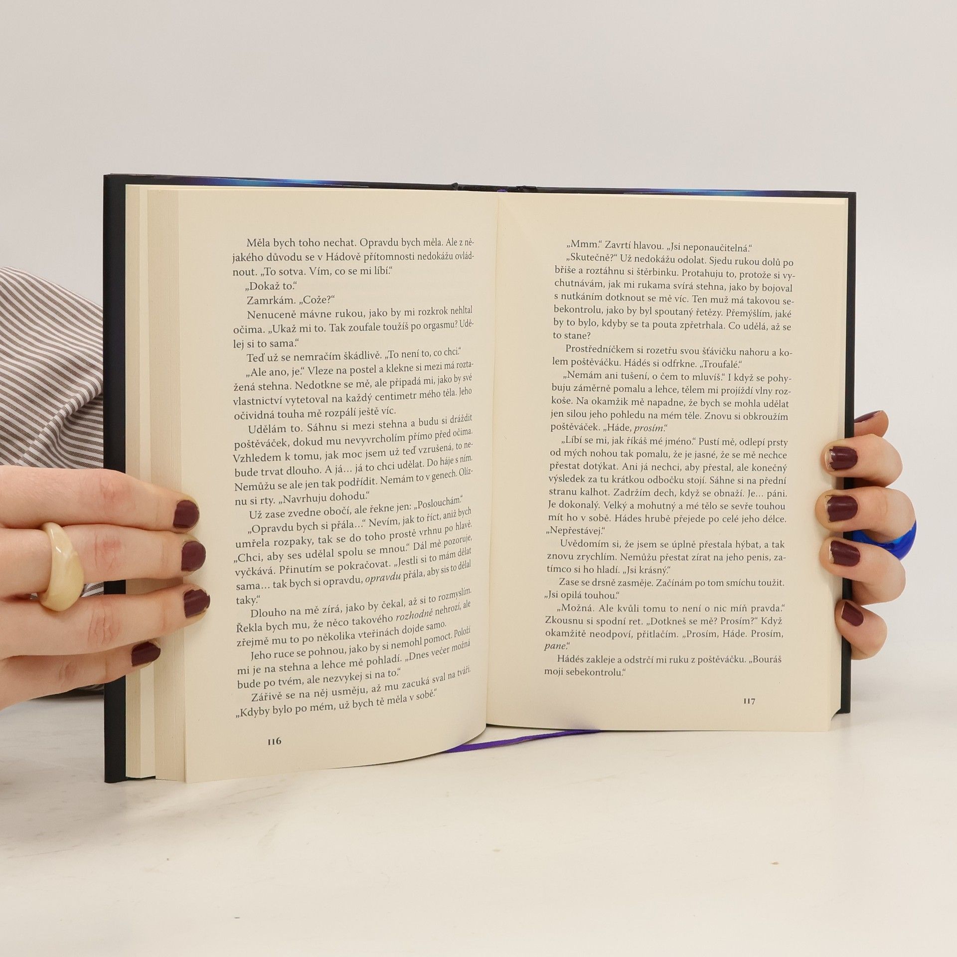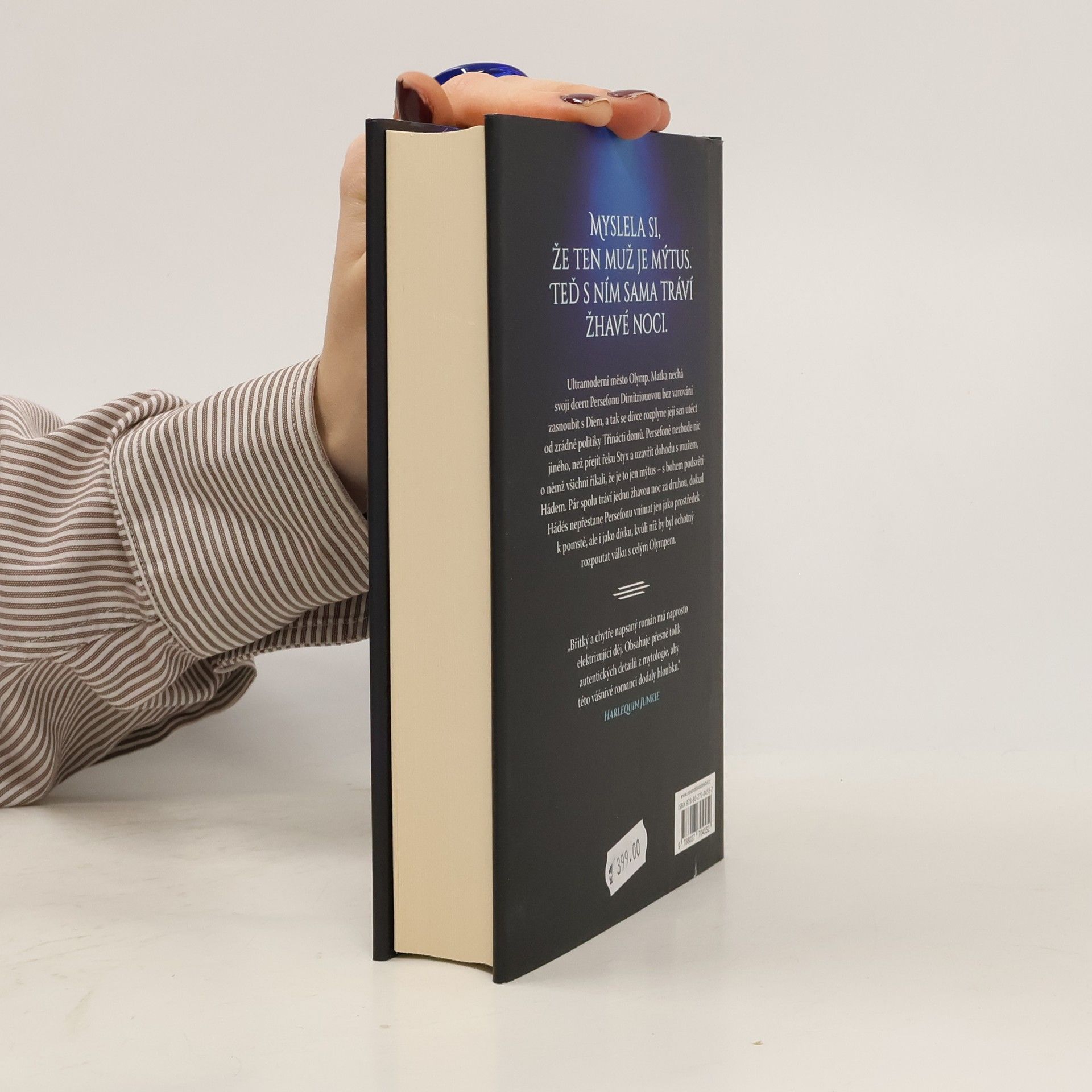 Všichni říkali, že je ten muž mýtus, ale sotva jsem přešla řeku Styx, jeho temné kouzlo mě uhranulo… a byl prostě můj. Miláček společnosti, Persefona Dimitriouová, chce uprchnout z ultramoderního města Olymp a začít znovu daleko od zrádné politiky Třinácti domů. Ale celý sen se vypaří v okamžiku, kdy ji matka bez varování nechá zasnoubit s Diem, nebezpečným vládcem temného města s nablýskanou fasádou. Persefoně nezbývá nic jiného, než prchnout do zakázaného dolního města a uzavřít ďáblovu dohodu s mužem, kterého považovala za legendu… s mužem, který ji dovede do světa, o jehož existenci neměla ani zdání. Hádés strávil celý svůj život ve stínech a vůbec netouží vystoupit na světlo. Když však zjistí, že mu Persefona může nabídnout střípek pomsty, po níž celá léta prahne, pomůže jí – za jistou cenu. Ale každá bezdechá noc, kterou stráví propletený s Persefonou, v něm probouzí tak silnou touhu, že je ochotný rozpoutat válku s celým Olympem, jen aby si ji udržel… Moderní převyprávění mýtu o Hádovi a Persefoně, které je stejně tak hříšné, jako sladké.