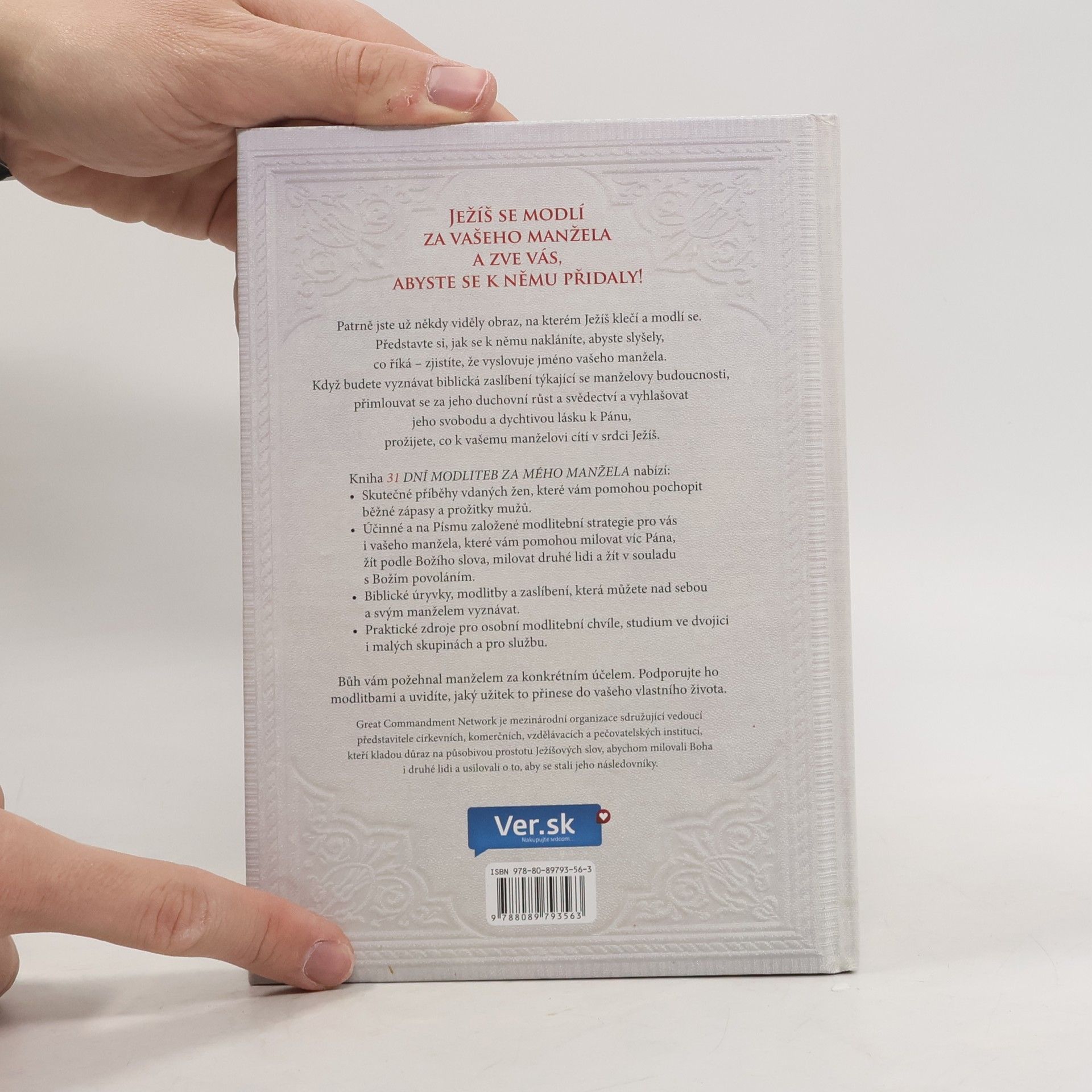 Kniha 31 dní modliteb za mého manžela nabízí: Skutečné příběhy vdaných žen, které vám pomohou pochopit běžné zápasy a prožitky mužů. Účinné a na Písmu založené modlitební strategie pro vás i vašeho manžela, které vám pomohou milovat víc Pána, žít podle Božího slova, milovat druhé lidi a žít v souladu s Božím povoláním. Biblické úryvky, modlitby a zaslíbení, která můžeme nad sebou a svým manželem vyznávat. Praktické zdroje pro osobní modlitební chvíle, studium ve dvojici i malých skupinách a pro službu. Bůh vám požehnal manželem za konkrétním účelem. Podporujte ho modlitbami a uvidíte, jaký užitek to přinese do vašeho vlastního života. Great Commnandment Network je mezinárodní organizace sdružující vedoucí představitele církevních, komerčních, vzdělávacích a pečovatelských institucí, kteří kladou důraz na působivou prostotu Ježíšových slov, abychom milovali Boha i druhé lidi usilovali o to, aby se stali jeho následovníky.
