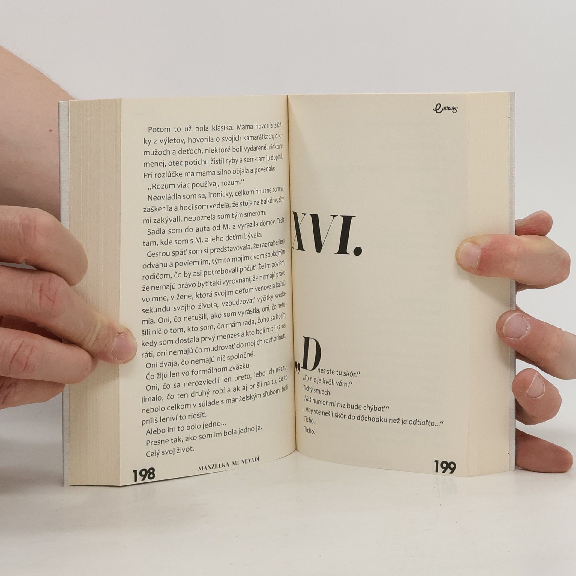 Ďalší skutočný príbeh od najúspešnejšej slovenskej autorky bestsellerov Evity Urbaníkovej, známej svojimi tituly ako „Všetko alebo nič“ a „Maj ma rád“. Vydavateľstvo EVITAPRESS vydalo dvanásť jej kníh, ktoré sa rýchlo stali bestsellerami. V roku 2018 sa presunula do MAFRA SLOVAKIA, kde jej román „V lete ti poviem, ako sa mám“ okamžite získal srdcia čitateľov a predaj presiahol 14.000 výtlačkov, čím sa stal najúspešnejším slovenským románom roka. Jej štrnásta kniha, ktorá vychádza 14. novembra, s názvom MANŽELKA MI NEVADÍ, sľubuje opäť skvelé a pohodové čítanie. Tentoraz ide o drsnejší príbeh zasadený do prostredia rodiny a vzťahov. Príbeh je úprimnou spoveďou matky a manželky, ktorá po sérii nešťastných rozhodnutí vyhľadá pomoc odborníkov. Uvedomujúc si fatálne následky svojich chýb, prichádza o to najcennejšie, čo roky budovala – svoju rodinu a deti. Tento trochu vtipný, trochu drsný skutočný príbeh zachytáva zložitosti života žien, mužov a detí, ktorým jedno rozhodnutie zmenilo všetko, čo žili predtým, a ovplyvnilo aj to, čo žijú teraz.