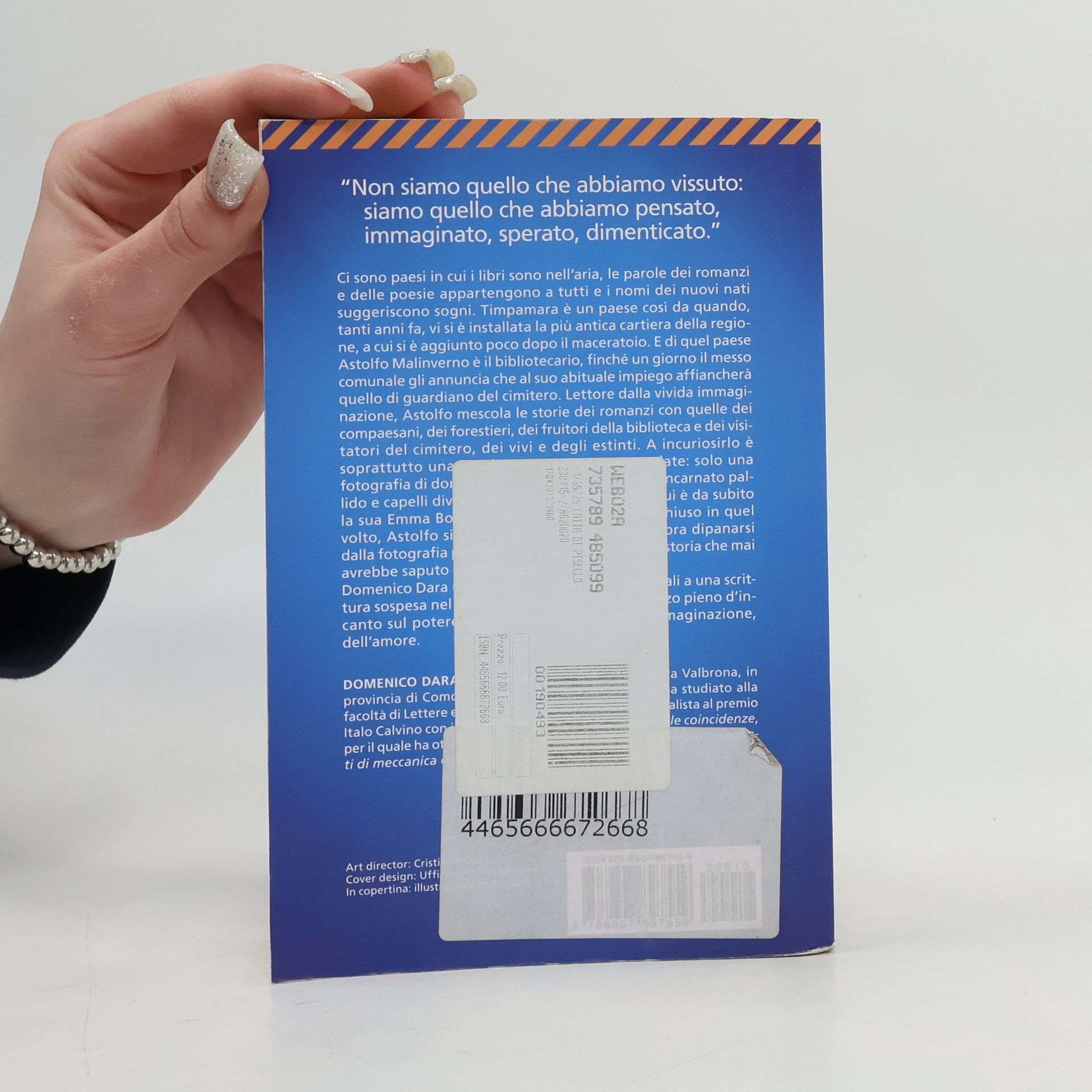 In un paese dove i libri sono parte integrante della vita quotidiana, Astolfo Malinverno è il bibliotecario di Timpamara, un luogo che ha prosperato grazie a una storica cartiera. Oltre ai suoi doveri in biblioteca, Astolfo riceve un nuovo incarico: diventare guardiano del cimitero al mattino. Qui, una foto di una donna su una lapide, priva di nome e date, cattura la sua attenzione e inizia a suscitare in lui un quasi innamoramento. Astolfo si immerge nel mistero di quel volto silenzioso, mentre attorno a lui si intrecciano le storie dei lettori, degli abitanti e dei visitatori del cimitero. Tra questi, ci sono figure comiche e toccanti, come la ragazza che, rimasta vedova prima delle nozze, chiede ad Astolfo di unire lei e il defunto in matrimonio. L'autore, Domenico Dara, dimostra un talento unico nel raccontare storie, creando un romanzo che esplora il potere della lettura, dell'immaginazione e dell'amore, sospendendo il tempo e incantando il lettore con una prosa evocativa.