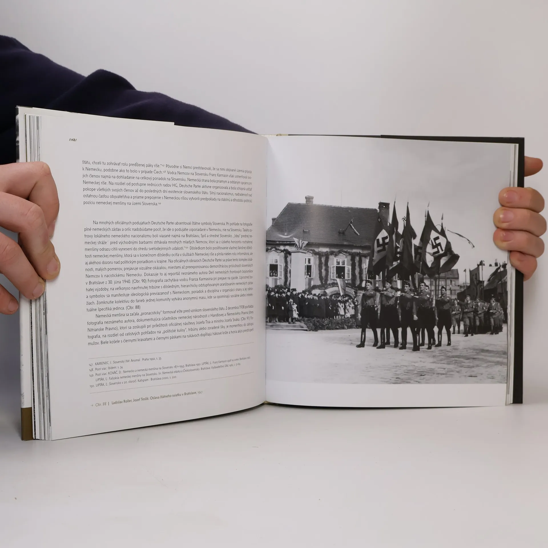 Oficiálne fotografie Slovenského štátu Reedícia publikácie po viac ako šiestich rokoch od prvého vydania nestratila na svojej aktuálnosti. Fotografie slovenského štátu predstavujú nielen mnohé oficiálne podujatia slovenského štátu, ale rozkrývajú aj mechanizmy prenikania ideológie, nacionalizmu a vojnových represií do spoločnosti. Kniha je zostavená tak, aby čitateľovi vizuálne sprostredkovala jednotlivé etapy vývoja slovenského štátu.