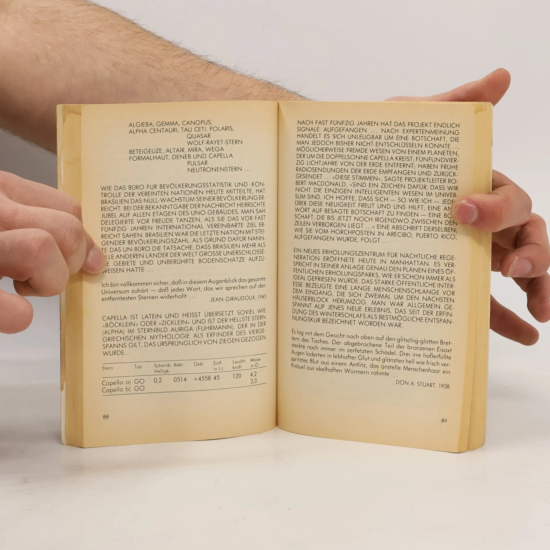 Seit fünfzig Jahren lauschen sie hinaus zu den Sternen. Doch aus all dem interstellaren Rauschen konnten sie nur das Brausen der Radiosterne und die chaotischen Emissionen ferner Galaxien heraushören, aber kein einziges Zeichen einer fremden intelligenten Rasse. Immer mehr Politiker fordern die Einstellung des kostspieligen Projekts, und die Forscher sind der Verzweiflung nahe. Doch dann ist plötzlich alles anders: Die Station fängt tatsächlich Signale auf, die nur künstlichen Ursprungs sein können. Intelligentes Leben im Weltall! Doch nicht alle sind begeistert, und manche werden erst recht misstrauisch, denn diese Sensation kommt allzu sehr wie gerufen...