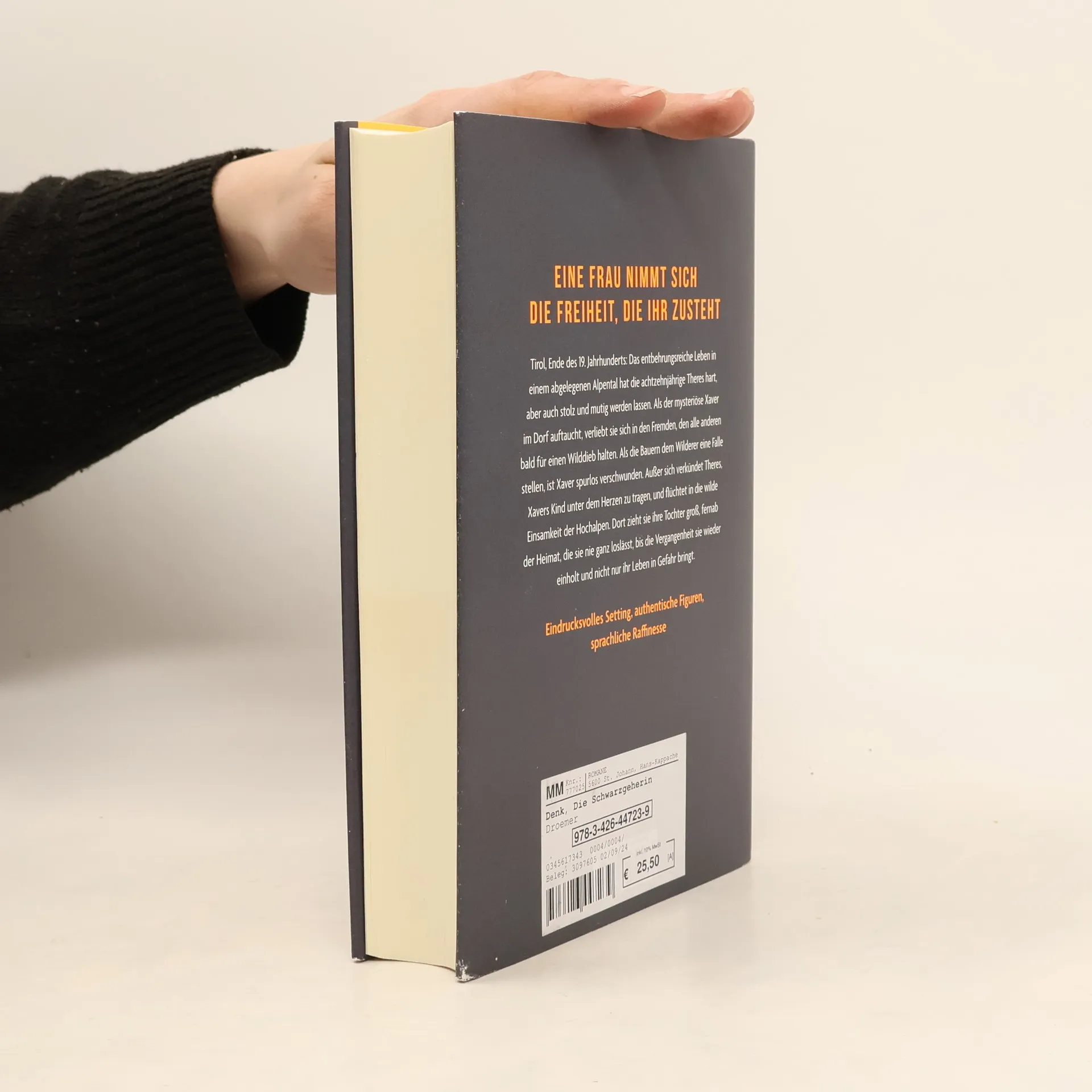 In "Die Schwarzgeherin" kämpft eine junge Frau im Tirol des 19. Jahrhunderts gegen patriarchale Strukturen und sucht nach Freiheit. Nach der Begegnung mit dem geheimnisvollen Xaver flieht sie mit ihrem ungeborenen Kind in die Alpen, um ein selbstbestimmtes Leben zu führen. Ein fesselnder Roman über Mut, Liebe und die Suche nach Identität.