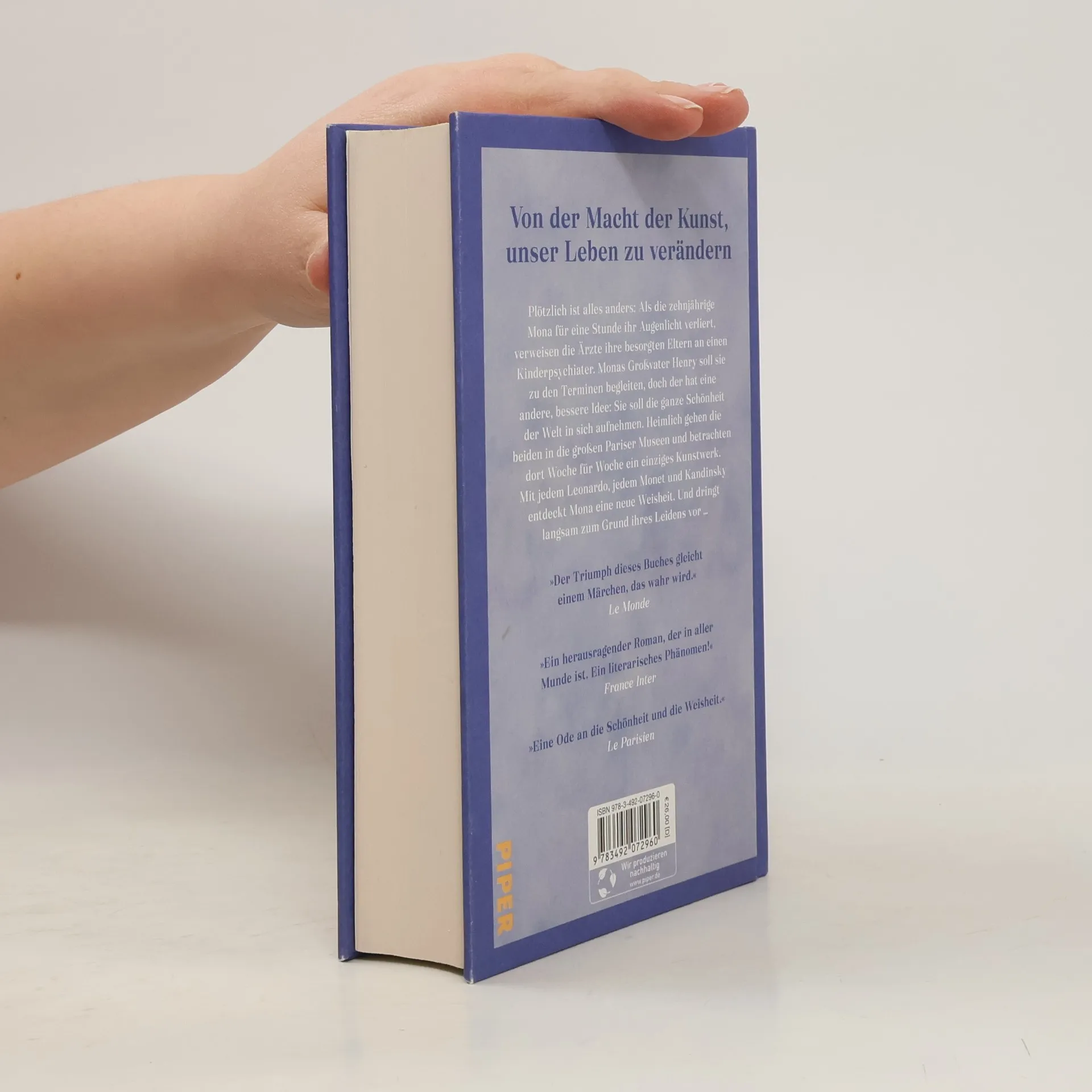 „Monas Augen“ erzählt von der zehnjährigen Mona, die nach einem Verlust ihres Augenlichts mit ihrem Großvater Henry die Schönheit der Kunst entdeckt. Gemeinsam besuchen sie Pariser Museen und lernen durch Meisterwerke wie von Leonardo und Monet, Weisheiten über das Leben. Ein berührender Roman über die transformative Kraft der Kunst.
