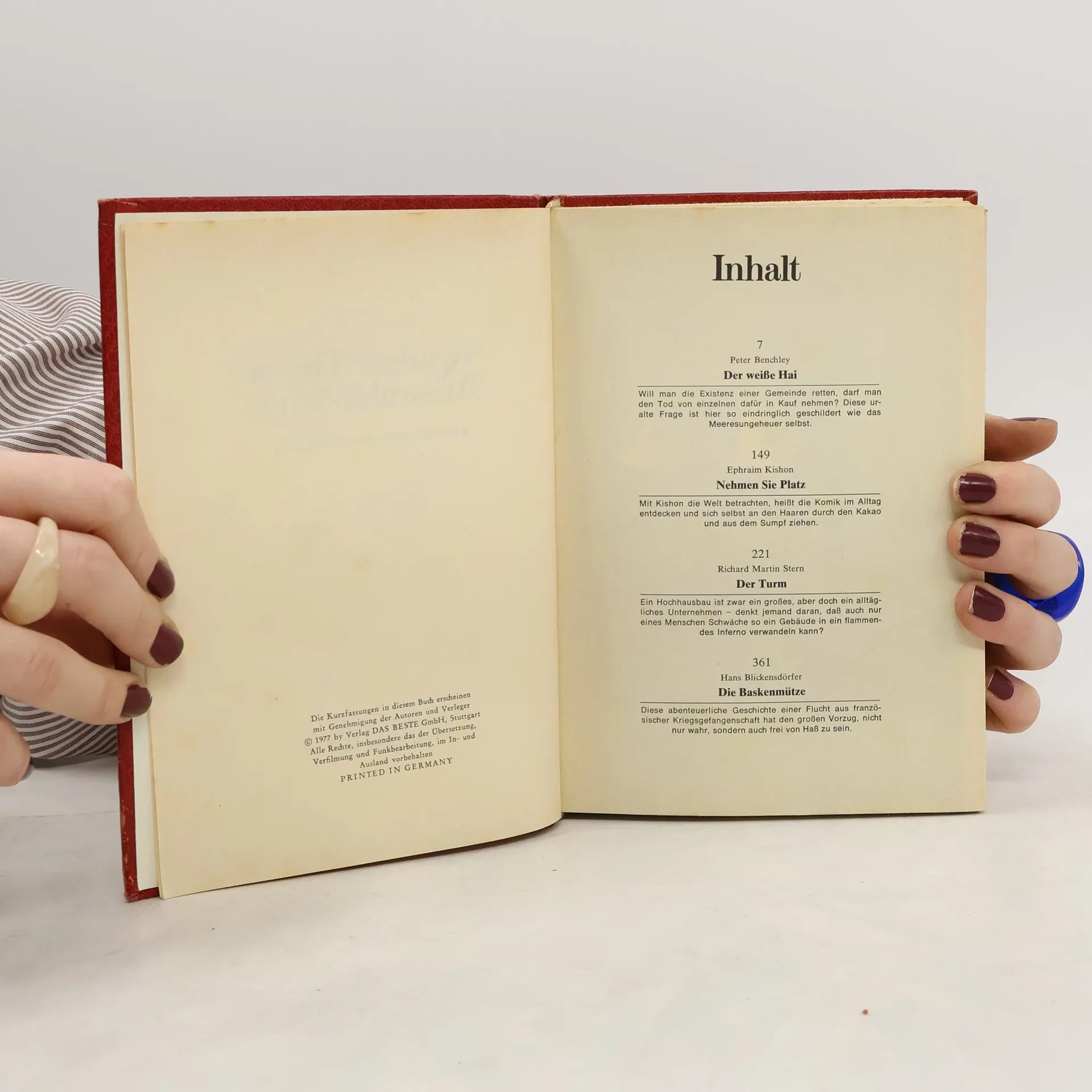 Nous avons un total de du titreReader's Digest Auswahlbücher. Der weiße Hai. Nehmen sie Platz. Der Turm. Die Baskenmütze (1977 ).