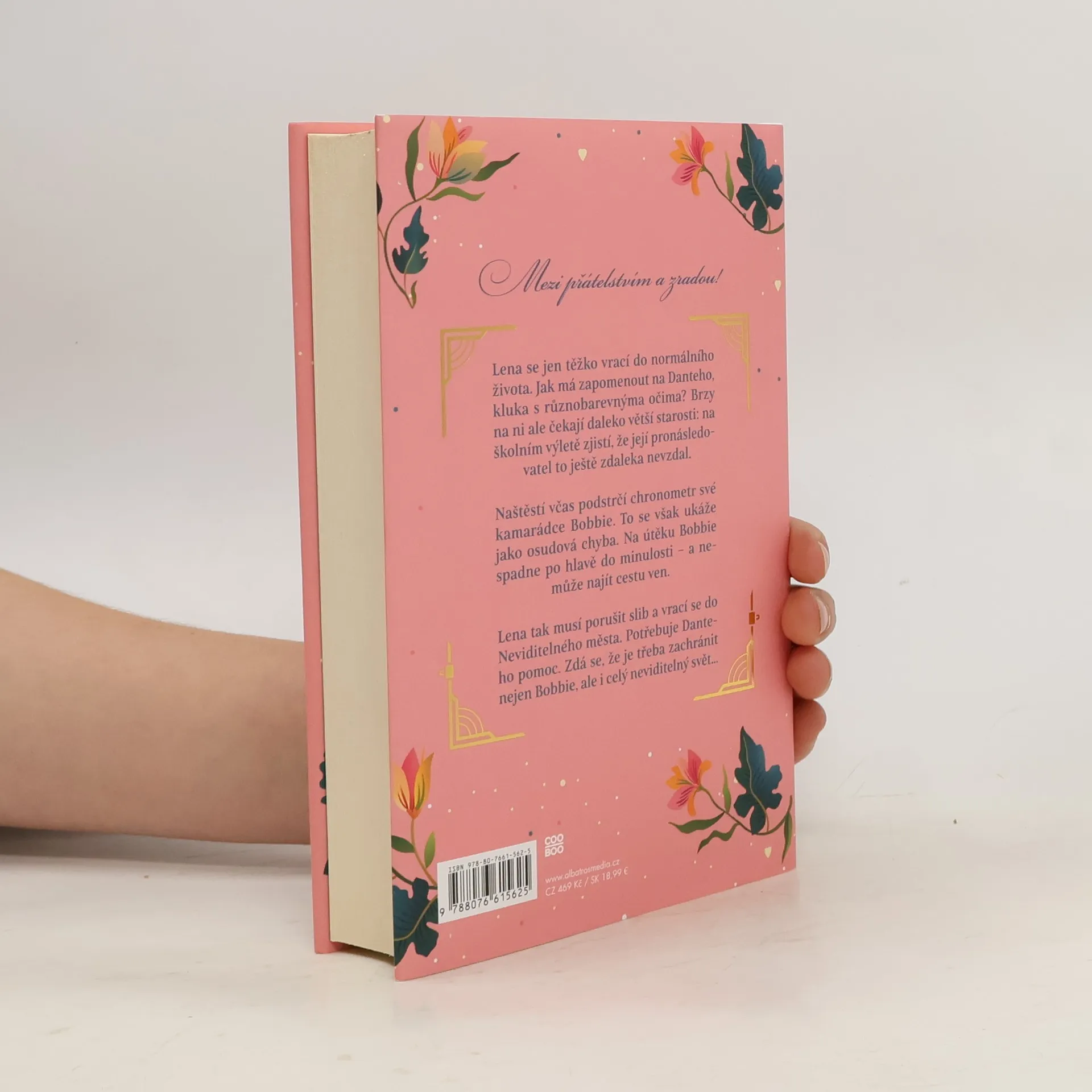 Mezi přátelstvím a zradou! Druhý díl série o cestování časem. Lena se jen těžko vrací do normálního života. Jak má jen tak zapomenout na Danteho, kluka s různobarevnýma očima? Brzy na ni ale čekají daleko větší starosti: na školním výletě zjistí, že její pronásledovatel to ještě zdaleka nevzdal. Na poslední chvíli se Leně podaří podstrčit chronometr, se kterým může cestovat časem, své kamarádce Bobbie. To se však ukáže jako osudová chyba. Na útěku Bobbie spadne po hlavě do minulosti - a protože cestovat časem neumí, nemůže najít cestu ven. Lena tak musí porušit svůj slib a vrací se do neviditelného města. Potřebuje Danteho pomoc. Její protivník je ale pořád aspoň o krok před ní a nyní musí Lena zachránit nejen Bobbie, ale i celý neviditelný svět...