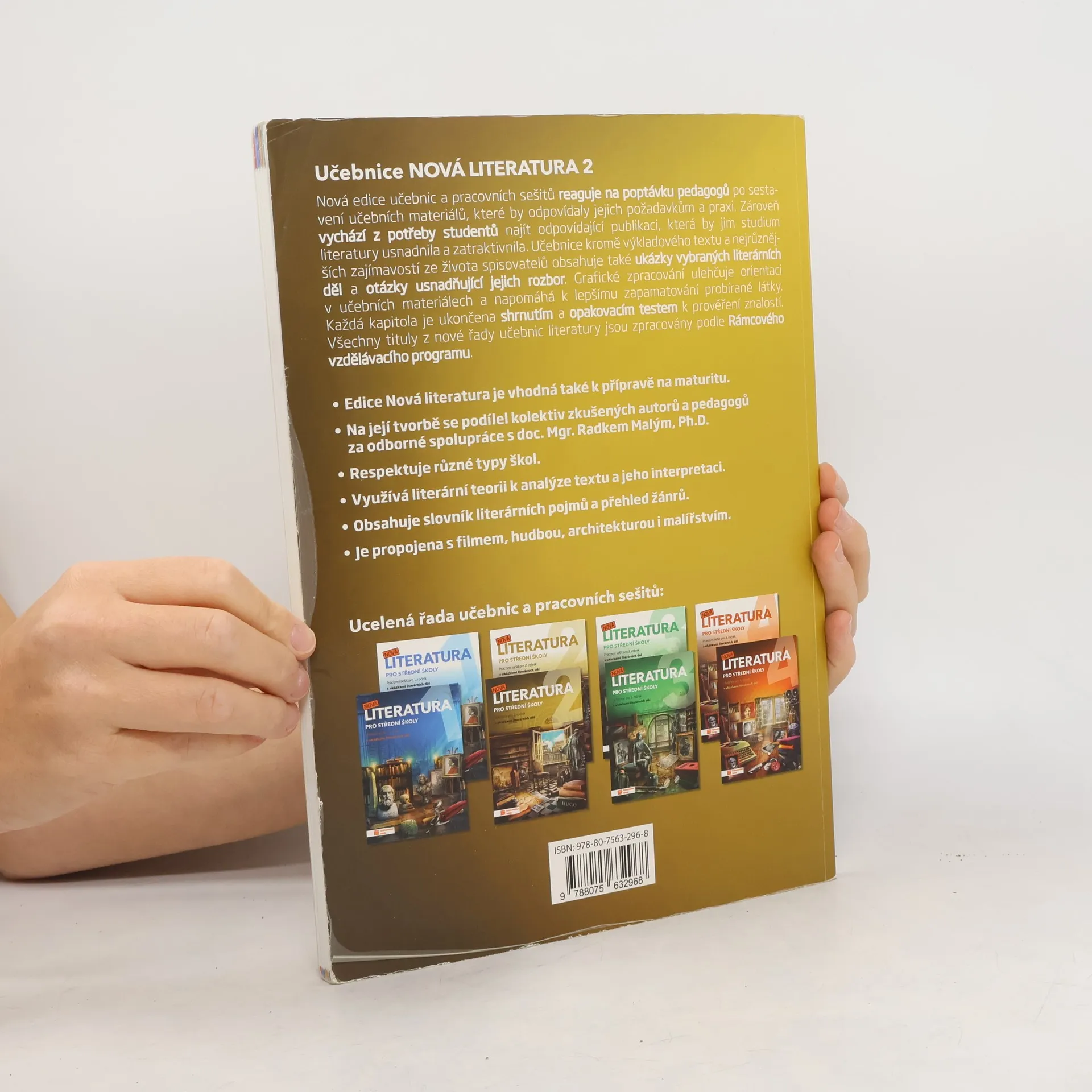 Učebnice kromě výkladového textu a nejrůznějších zajímavostí ze života spisovatelů obsahuje také ukázky vybraných literárních děl a otázky usnadňující jejich rozbor. Grafické zpracování ulehčuje orientaci v učebních materiálech a napomáhá lepšímu zapamatování probírané látky.Každá kapitola je ukončena shrnutím a opakovacím testem k prověření znalostí. Nová edice učebnic a pracovních sešitů reaguje na poptávku pedagogů po sestavení učebních materiálů, které by odpovídaly jejich požadavkům a praxi. Zároveň vychází z potřeby studentů najít odpovídající publikaci, která by jim studium literatury usnadnila a zatraktivnila.