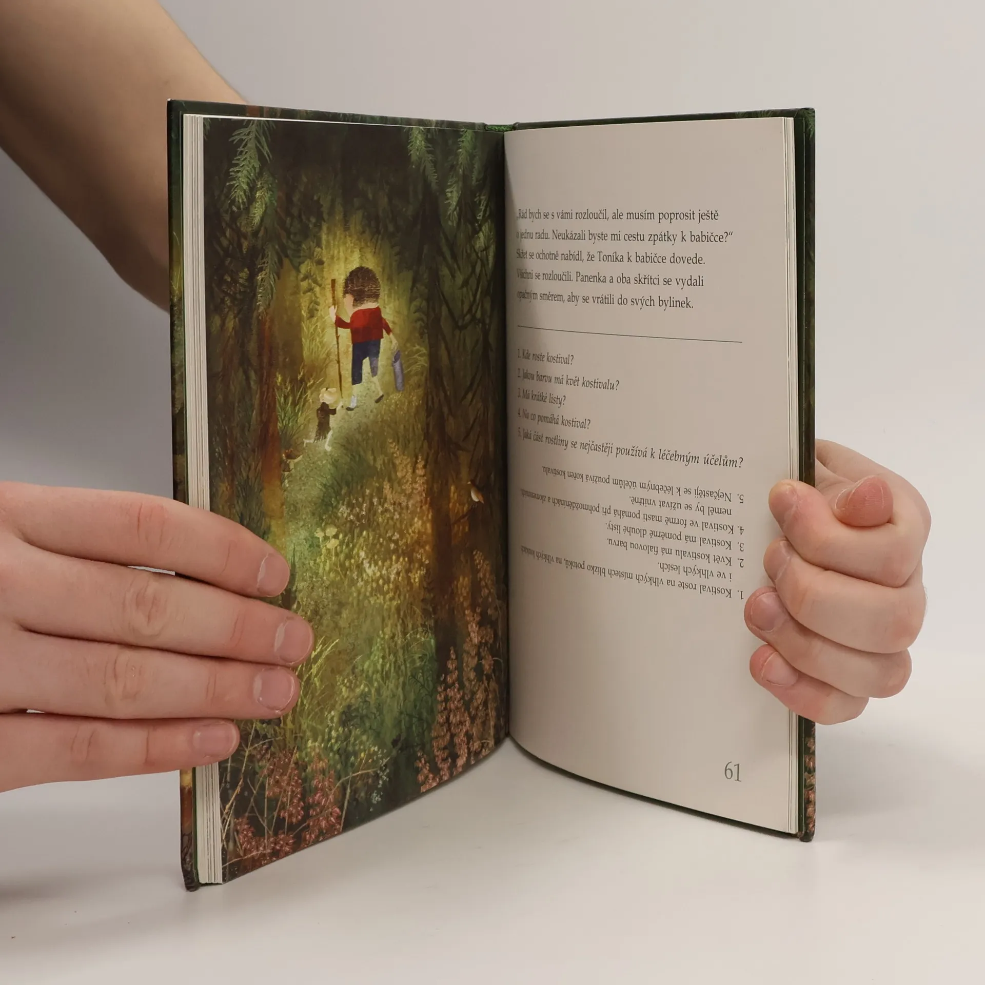 Cesta lesem se stala pro malého chlapce Toníka napínavým dobrodružstvím a přinesla mu také seznámení s některými léčivými rostlinami. Chlapec tráví prázdniny na venkově u babičky, a protože se nechoval příliš dobře, musí za trest nevědomky překročit bludný kořen a ztratí se v lese. Čtenář sleduje Toníkovo napínavé dobrodružství s panenkami z květin a skřítky, kteří se mu snaží pomoci najít cestu z tajemného hvozdu. Děti se při četbě seznámí s některými léčivými rostlinami, pochopí, že každá rostlina má na světě své místo, a poznají také, že řada rostlin může být pro lidi užitečná. Aby si získané poznatky upevnily, mohou si společně s rodiči zodpovědět otázky na konci každé kapitoly. V poznávání rostlin dětem pomáhají názorné ilustrace. Kniha je určena dětem mladšího školního věku, k předčítání i předškolákům, jejich rodičům a učitelkám mateřských škol.