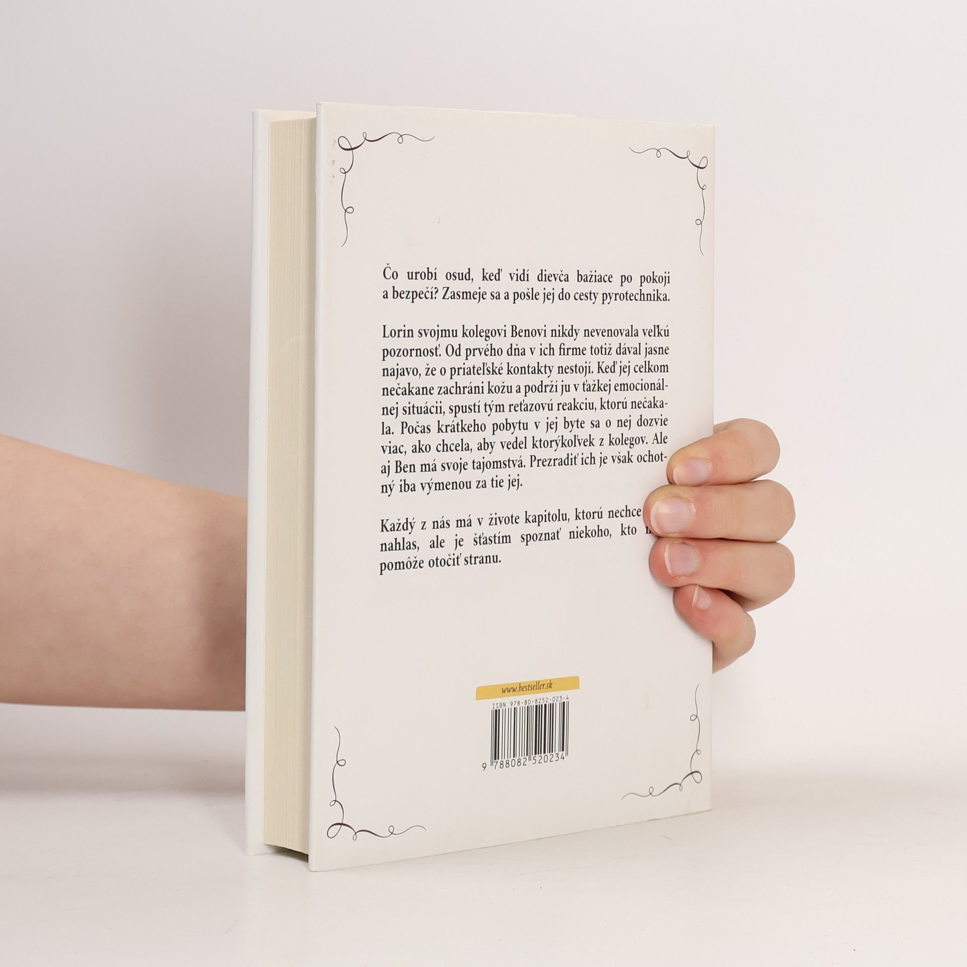 Čo urobí osud, keď vidí dievča bažiace po pokoji a bezpečí? Zasmeje sa a pošle jej do cesty pyrotechnika. Lorin svojmu kolegovi Benovi nikdy nevenovala veľkú pozornosť. Od prvého dňa v ich firme totiž dával jasne najavo, že o priateľské kontakty nestojí. Keď jej celkom nečakane zachráni kožu a podrží ju v ťažkej emocionálnej situácii, spustí tým reťazovú reakciu, ktorú nečakala. Počas krátkeho pobytu v jej byte sa o nej dozvie viac, ako chcela, aby vedel ktorýkoľvek z kolegov. Ale aj Ben má svoje tajomstvá. Prezradiť ich je však ochotný iba výmenou za tie jej. Každý z nás má v živote kapitolu, ktorú nechce čítať nahlas, ale je šťastím spoznať niekoho, kto nám pomôže otočiť stranu.