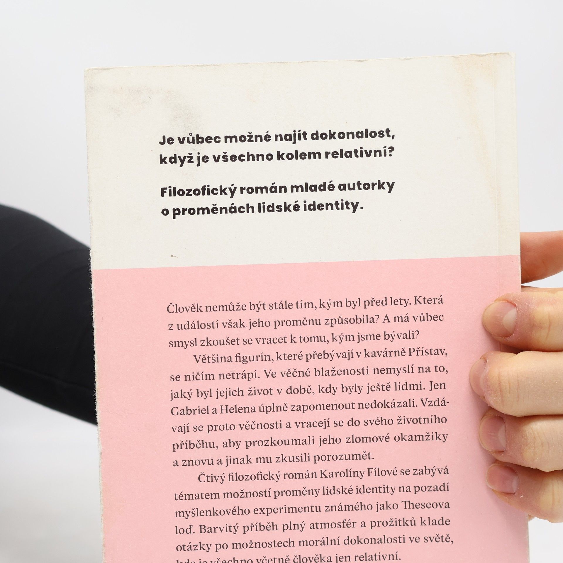 Je vůbec možné najít dokonalost, když všechno kolem je relativní? Když se před vámi objeví kavárna Přístav, už není třeba se trápit. Jednoduše si sednete, necháte si přinášet jeden šálek za druhým a postupně se proměňujete ve figurínu. Vaše věčnost právě začíná! Tělesnou dokonalost a nekonečný poklid mořského šumu získáte pod jedinou podmínkou: už nikdy nepromluvíte. Nabídka, která se neodmítá. Nebo snad ano? Odpověď není ani zdaleka tak jednoznačná, alespoň z pohledu Gabriela, jednoho z návštěvníků kavárny. Oproti všem očekáváním se jednoho dne vytratí a zanechá za sebou pouze nápovědu v podobě pěti pohlednic. Ze světa věčného klidu se ho vydává hledat jeho bývalá přítelkyně. Jenže v pražských ulicích se figuríny mění k nepoznání. Morálně dokonalý svět Přístavu je ten tam a návrat na věčnost se jen tak nekoná. Filozofický román Karolíny Fílové klade otázky po hledání aristotelovského středu coby ctnosti a prozkoumává možnosti dosažení morální dokonalosti ve světě, kde je všechno jen relativní.