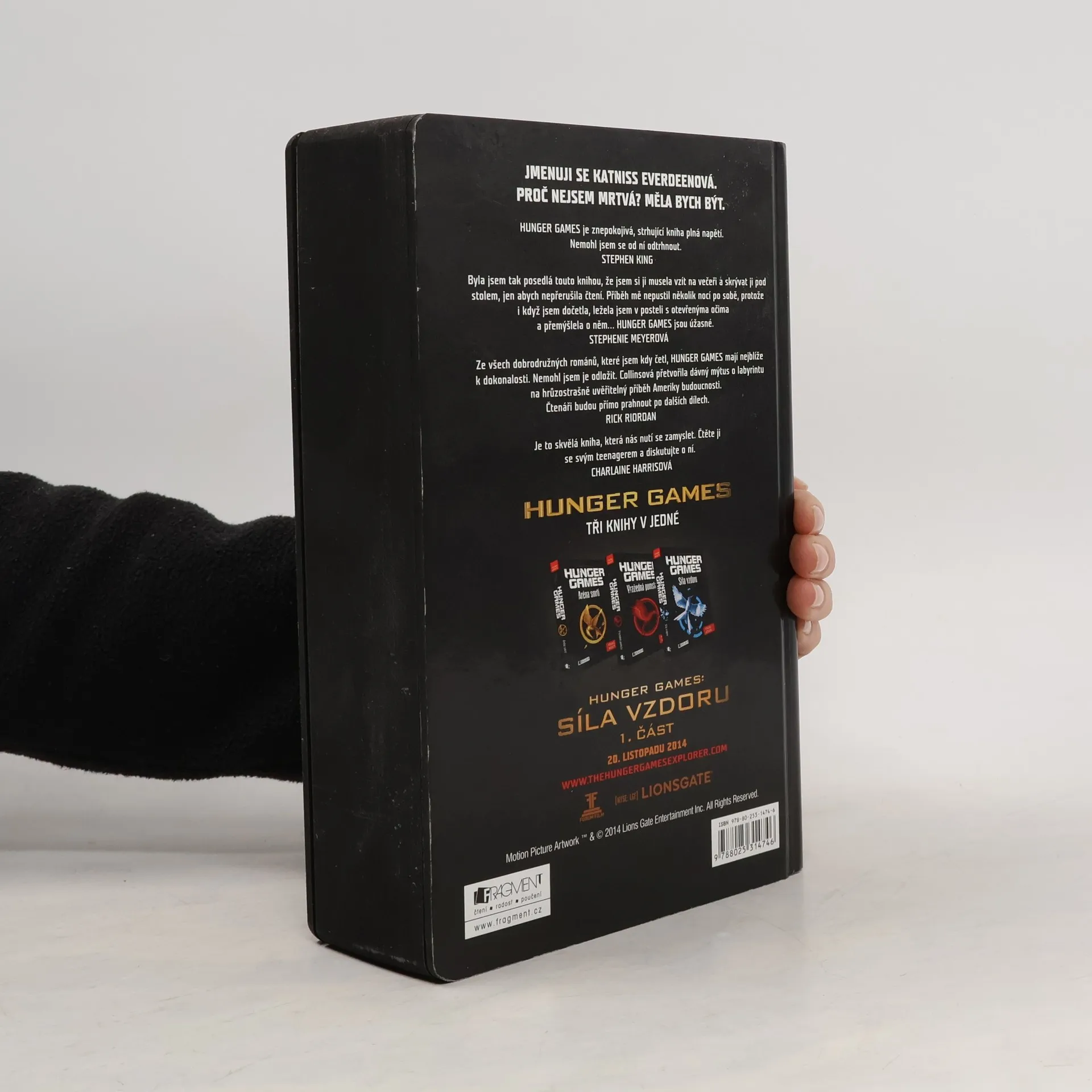 Kompletní vydání trojdílné sci-fi série "Hunger games", která se zabývá zajímavým fenoménem reality show a zachycuje průběh velkolepé, na druhé straně však i poněkud zvrácené televizní soutěže, v níž jsou ve hře lidské životy. Vítězství znamená slávu a bohatství. Prohra znamená jistou smrt. Hunger Games začínají... V troskách bývalé Severní Ameriky se rozkládá země Panem s nablýskaným hlavním městem Kapitolem a dvanácti okolními kraji. Kapitol jim vládne krutou a tvrdou rukou. Poslušnost si udržuje kláním Hunger Games – zvrácenou televizní reality show, ve které každoročně jedna dívka a jeden chlapec z každého kraje nedobrovolně bojují o život. Do hry však vstupuje šestnáctiletá Katniss, která se nehodlá podřídit... Překvapivé výsledky zápasu povzbudí obyvatele země Panem, aby se postavili k odporu, a v krajích se formuje odboj. Podaří se zabránit krvavému střetnutí, jehož důsledky by byly víc než hrozivé? Souborné vydání světového bestselleru.