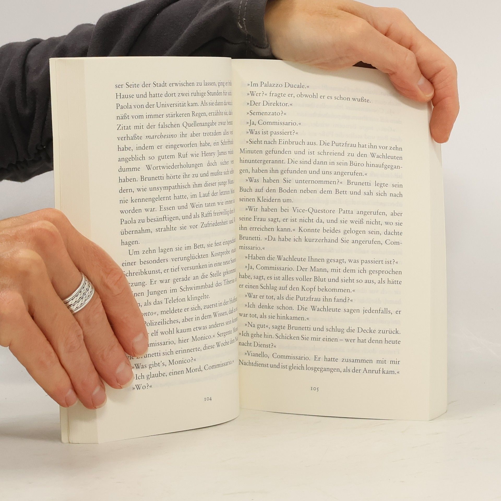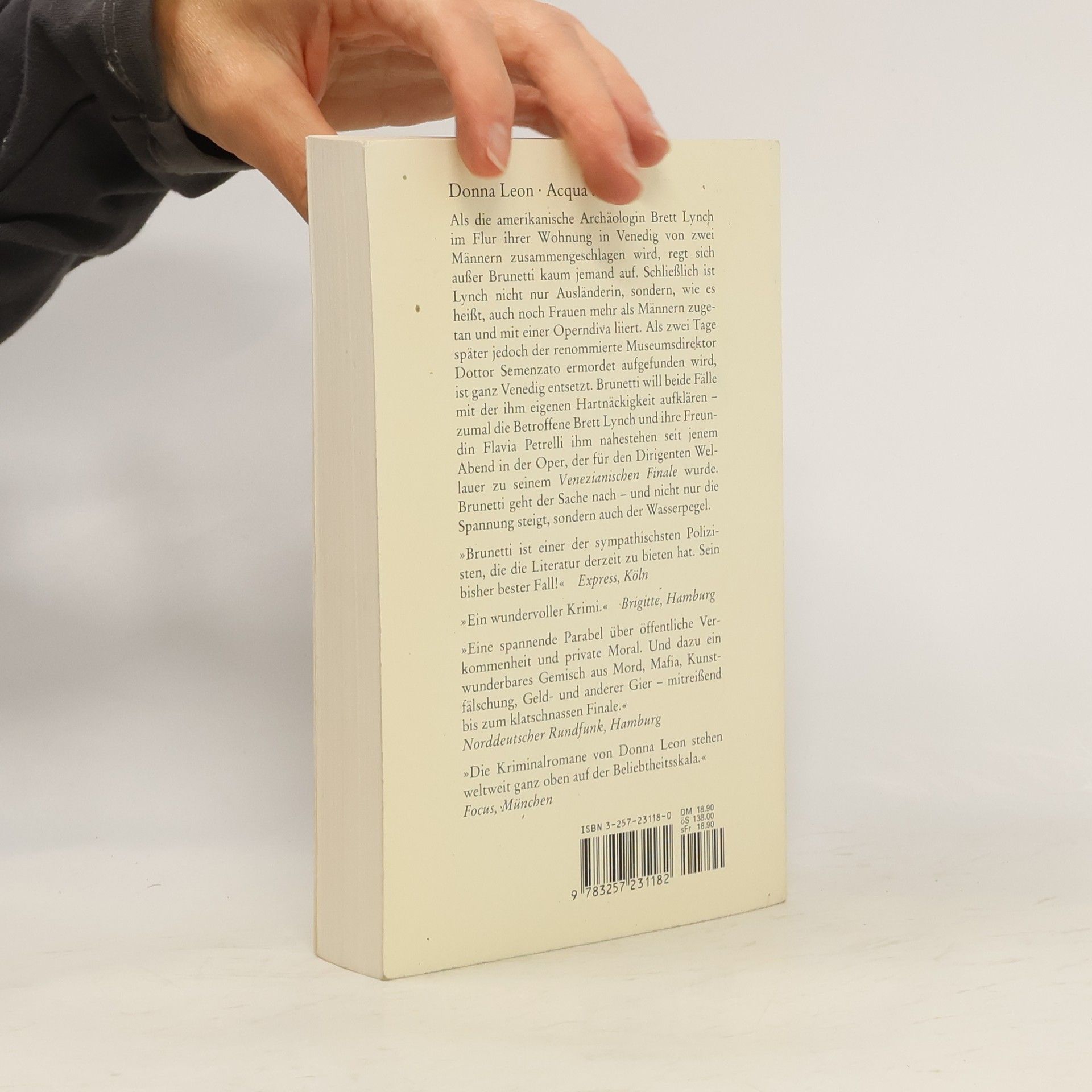 Als die amerikanische Archäologin Brett Lynch im Flur ihrer Wohnung n Venedig von zwei Männern zusammengeschlagen wird, regt sich außer Brunetti kaum jemand auf. Schließlich ist Lynch nicht nur Ausländerin, sondern wie es heißt, auch noch Frauen mehr als Männern zugetan und mit einer Operndiva liiert. Als zwei Tage später jedoch der renommierte Museumsdirektor Dottor Semenzato ermordet aufgefunden wird, ist ganz Venedig entsetzt. Brunetti will beide Fälle mit der ihm eigenen Hartnäckigkeit aufklären - zumal die Betroffene Brett Lynch und ihre Freundin Flavia Petrelli ihm nahestehen seit jenem Abend in der Oper, der für den Dirigenten Wellauer zu seinem VENEZIANISCHEN FINALE wurde. Brunetti geht der Sache nach - und nicht nur die Spannung steigt, sondern auch der Wasserpegel.