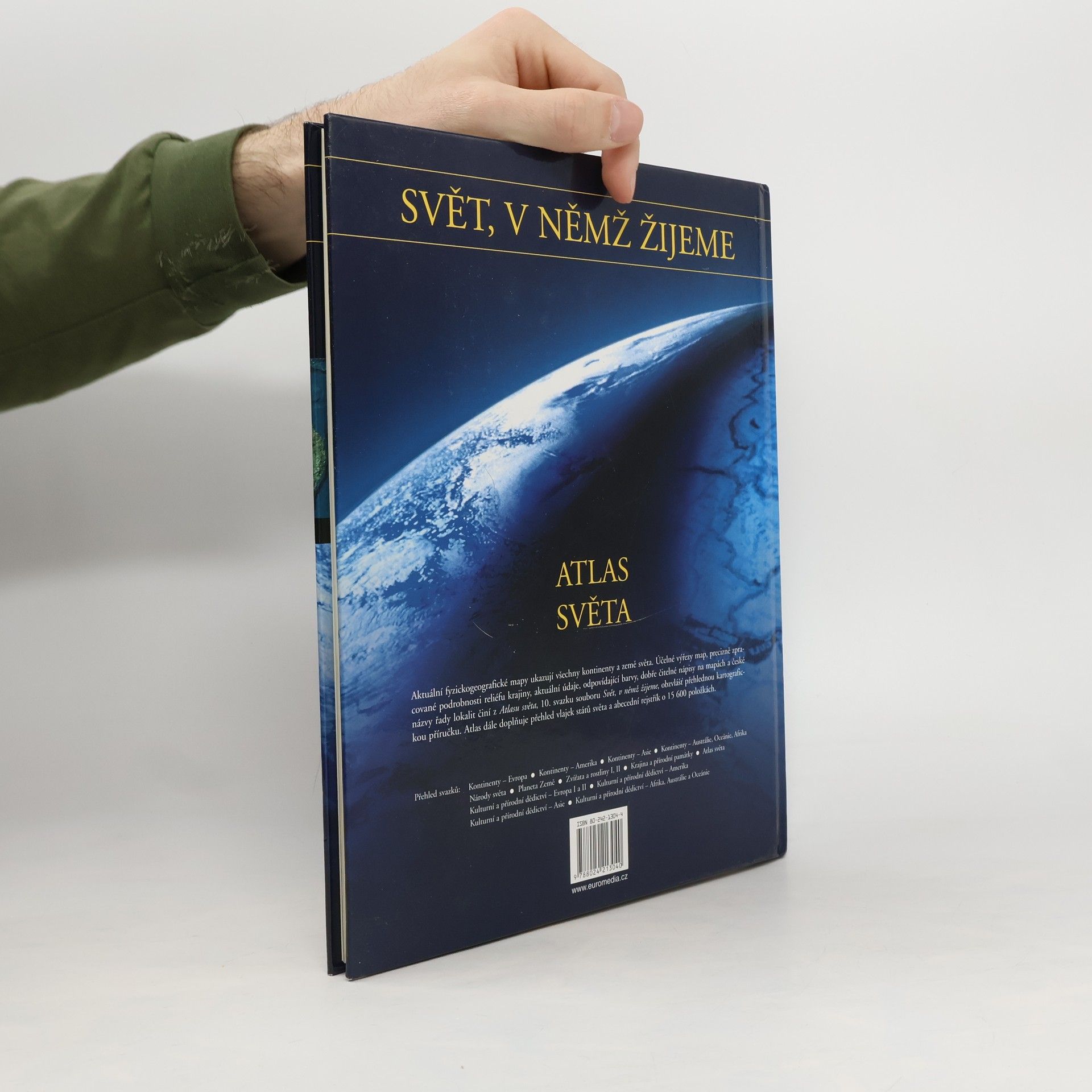 Aktuální fyzickogeografické mapy ukazují všechny kontinenty a země světa. Účelné výřezy map, precizně zpracované podrobnosti reliéfu krajiny, aktuální údaje, odpovídající barvy, dobře čitelné nápisy na mapách a české názvy řady lokalit činí z Atlasu světa, 10. svazku souboru Svět, v němž žijeme, obzvlášť přehlednou kartografickou příručku. Atlas dále doplňuje přehled vlajek států světa a abecední rejstřík o 15 600 položkách.