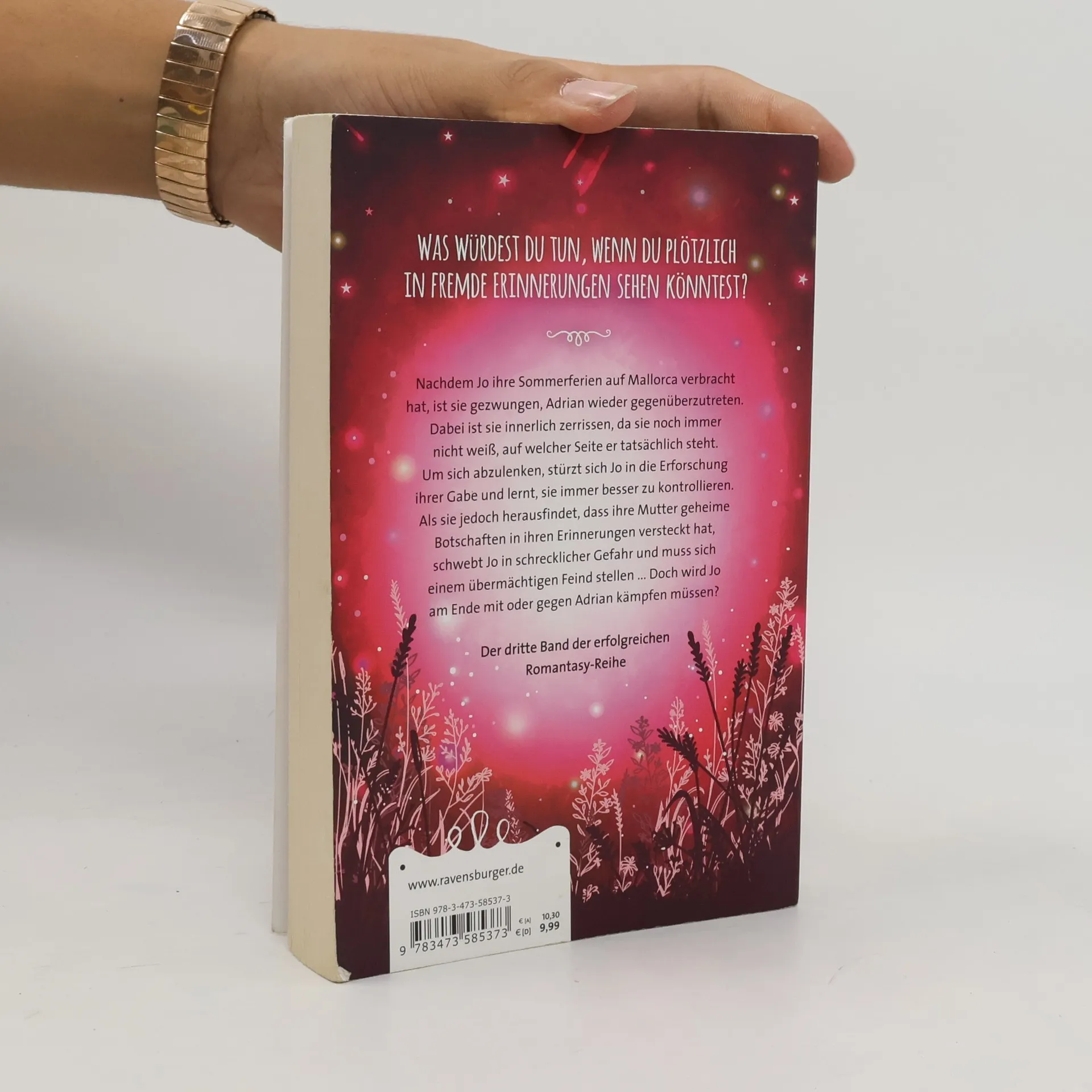 Was würdest du tun, wenn du plötzlich in fremde Erinnerungen sehen könntest? Die zauberhafte Geschichte von Adrian & Jo geht weiter! Nachdem Jo ihre Sommerferien auf Mallorca verbracht hat, ist sie gezwungen, Adrian wieder gegenüberzutreten. Dabei ist sie innerlich zerrissen, da sie noch immer nicht weiß, auf welcher Seite er tatsächlich steht. Um sich abzulenken, stürzt sich Jo in die Erforschung ihrer Gabe und lernt, sie immer besser zu kontrollieren. Als sie jedoch herausfindet, dass ihre Mutter geheime Botschaften in ihren Erinnerungen versteckt hat, schwebt Jo in schrecklicher Gefahr und muss sich einem übermächtigen Feind stellen ... doch wird Jo am Ende mit oder gegen Adrian kämpfen müssen? „17 - Das dritte Buch der Erinnerung“ aus der fantastischen Romantasy-Reihe „Die Bücher der Erinnerung“. 17 - Das erste Buch der Erinnerung17 - Das zweite Buch der Erinnerung17 - Das dritte Buch der Erinnerung17 - Das vierte Buch der Erinnerung