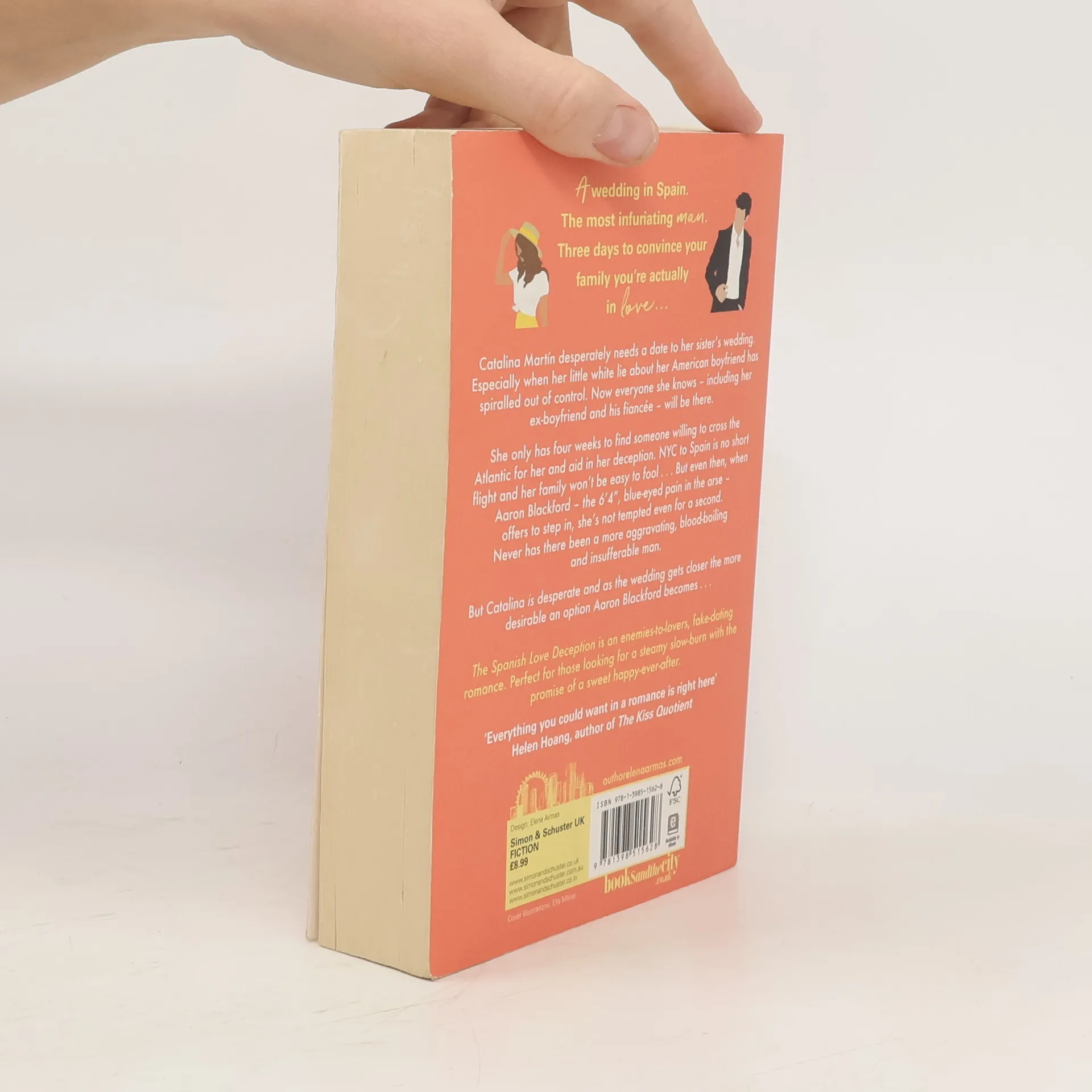 A wedding in Spain. The most infuriating man. Three days to convince your family you're actually in love. . . Catalina Martín desperately needs a date to her sister's wedding. Especially when her little white lie about her American boyfriend has spiralled out of control. Now everyone she knows – including her ex-boyfriend and his fiancée – will be there. She only has four weeks to find someone willing to cross the Atlantic for her and aid in her deception. NYC to Spain is no short flight and her family won't be easy to fool. . . But even then, when Aaron Blackford – the 6'4", blue-eyed pain in the arse – offers to step in, she's not tempted even for a second. Never has there been a more aggravating, blood-boiling and insufferable man. But Catalina is desperate and as the wedding gets closer the more desirable an option Aaron Blackford becomes. . . The Spanish Love Deception is an enemies-to-lovers, fake-dating romance. Perfect for those looking for a steamy slow-burn with the promise of a sweet happy-ever-after.
