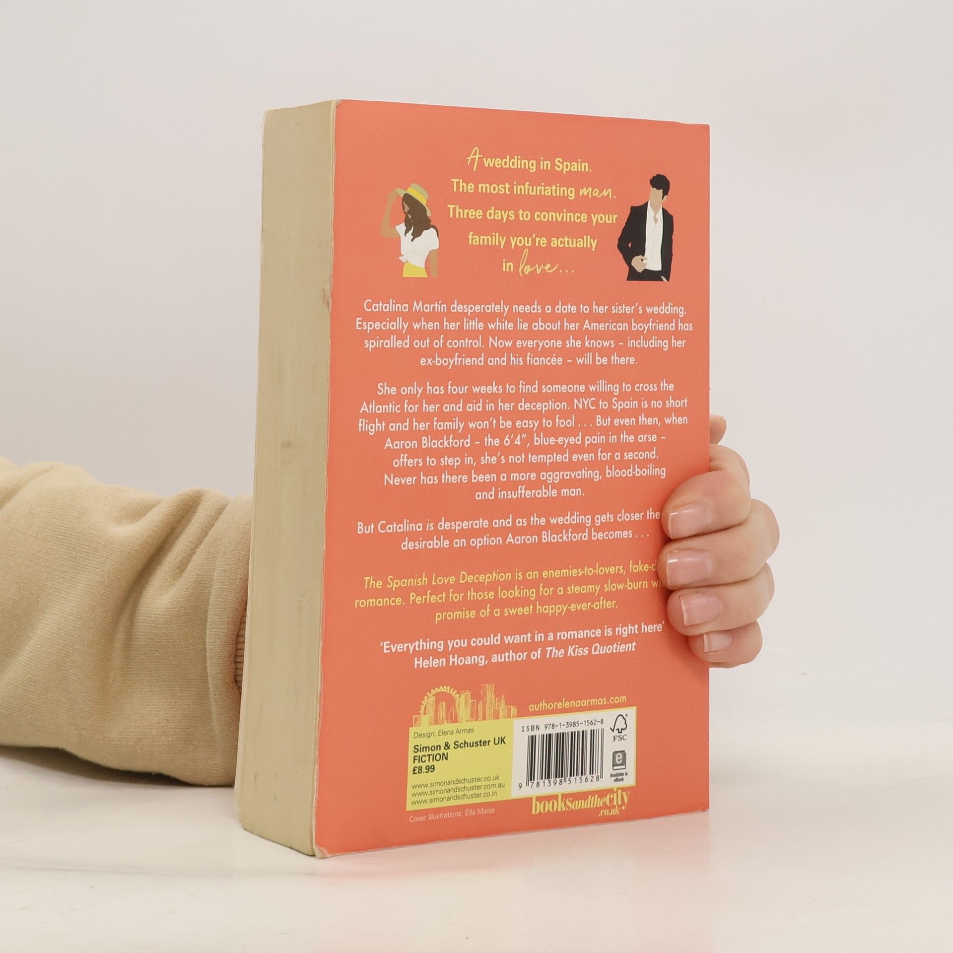 A wedding in Spain. The most infuriating man. Three days to convince your family you're actually in love. . . Catalina Martín desperately needs a date to her sister's wedding. Especially when her little white lie about her American boyfriend has spiralled out of control. Now everyone she knows – including her ex-boyfriend and his fiancée – will be there. She only has four weeks to find someone willing to cross the Atlantic for her and aid in her deception. NYC to Spain is no short flight and her family won't be easy to fool. . . But even then, when Aaron Blackford – the 6'4", blue-eyed pain in the arse – offers to step in, she's not tempted even for a second. Never has there been a more aggravating, blood-boiling and insufferable man. But Catalina is desperate and as the wedding gets closer the more desirable an option Aaron Blackford becomes. . . The Spanish Love Deception is an enemies-to-lovers, fake-dating romance. Perfect for those looking for a steamy slow-burn with the promise of a sweet happy-ever-after.