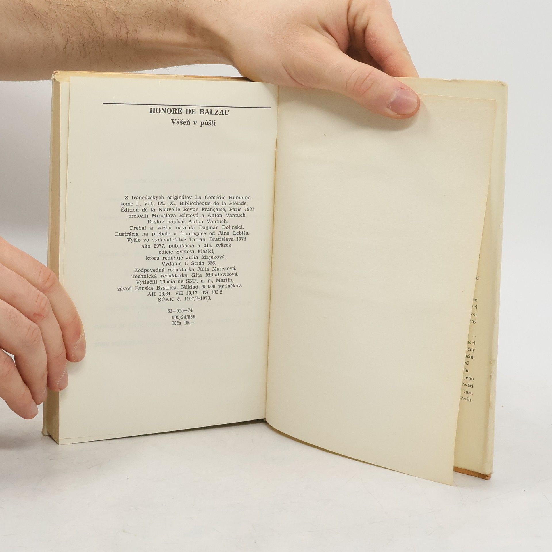 Vášeň v púšti, Honoré de Balzac, Miroslava Bártová, Anton Vantuch