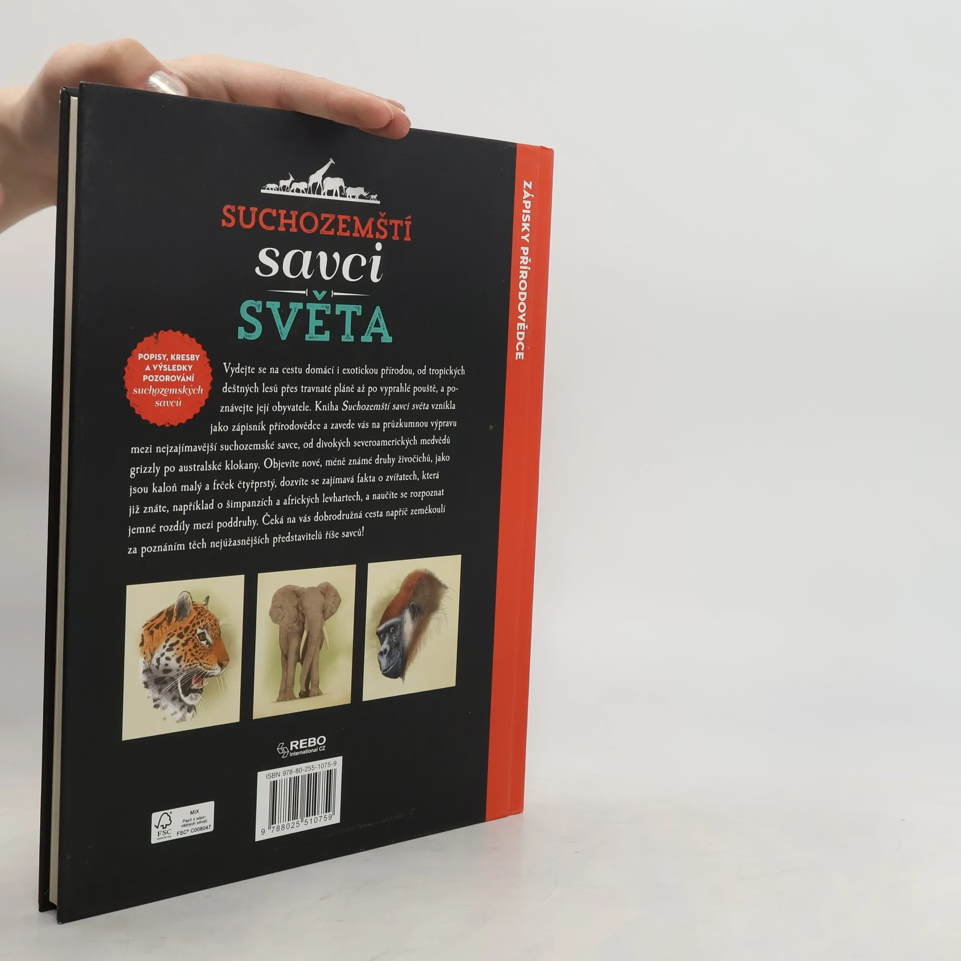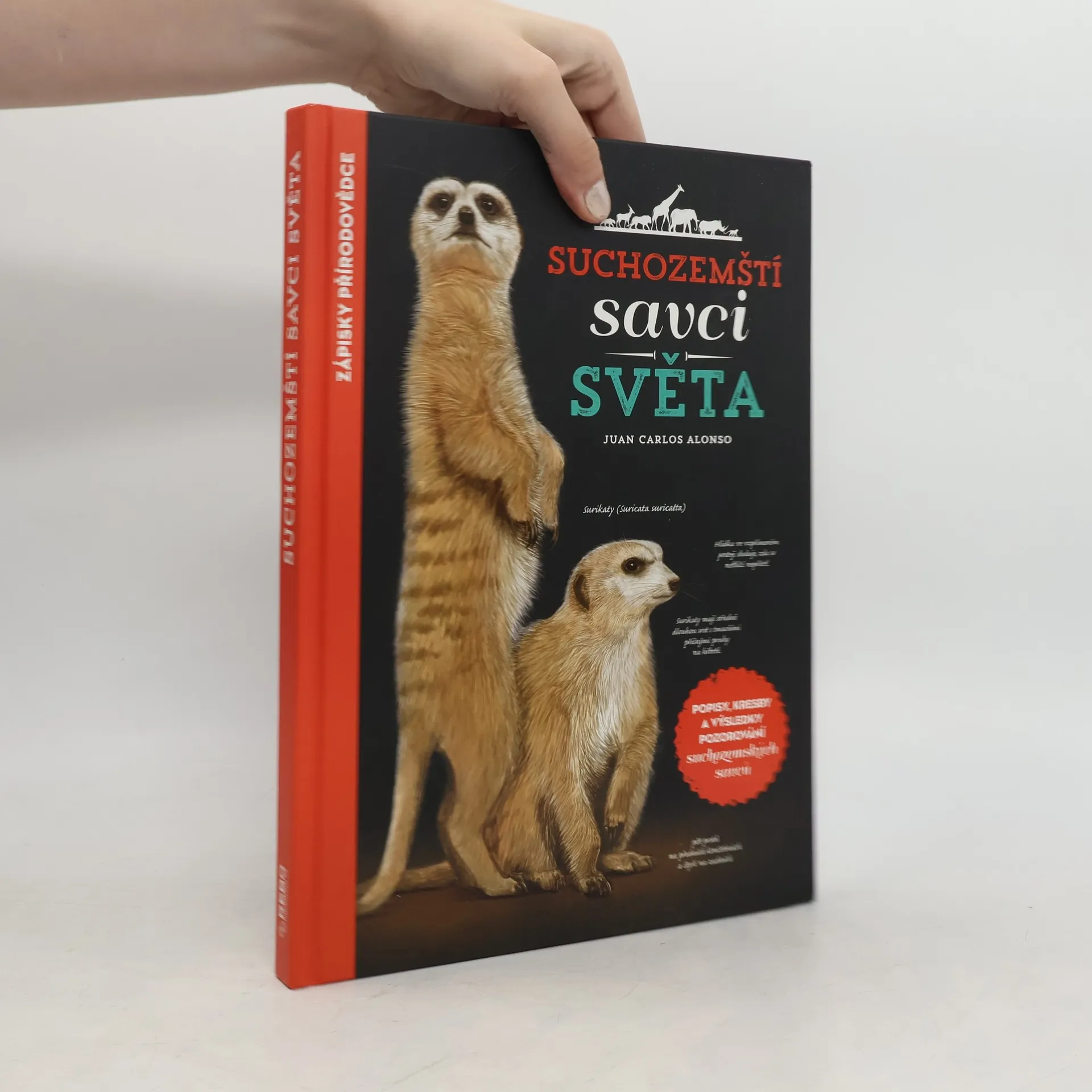 Kniha vznikla jako zápisky z cest amerického autora a ilustrátora Juana Carlose Alonsa, který na svých výpravách kolem světa studoval život zvířat. Výsledek těchto studií, titul Suchozemští savci světa, obsahuje nejen podrobné popisy nejzajímavějších suchozemských savců, ale také nádherné kresby jednotlivých zvířat vytvořené samotným autorem. Čtenář se dozví detailní údaje o způsobu života, stravě, velikosti, hmotnosti či stupni ohrožení známých i méně známých savců. Přehledné popisky ke všem kresbám čtenáři představí zajímavosti týkající se tělesné stavby zvířat.