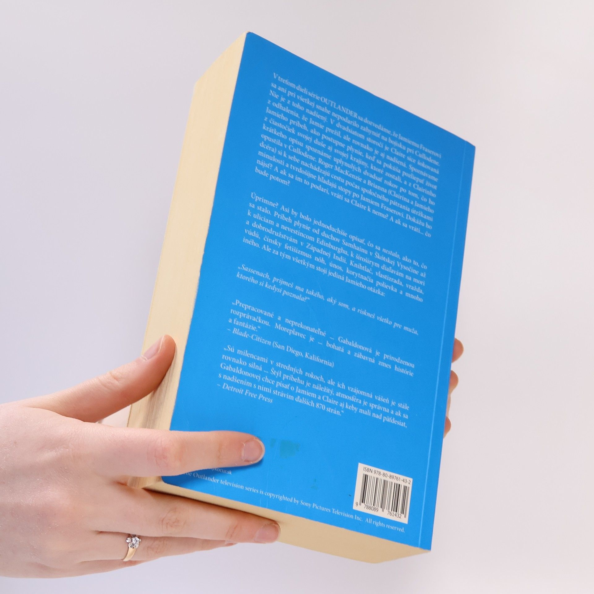 V treťom dieli série OUTLANDER sa dozvedáme, že Jamiemu Fraserovi sa ani pri všetkej snahe nepodarilo zahynúť na bojisku pri Cullodene. Nie je z toho nadšený. V dvadsiatom storočí je Claire síce šokovaná z odhalenia, že Jamie prežil, ale rovnako je aj nadšená. Spoznávame Jamieho príbeh, ako postupne plynie, keď sa pokúša pozliepať život z čiastočiek svojej duše aj svojej krajiny, ktoré zostali, a z Clairinho krátkeho opisu spoznáme uplynulých dvadsať rokov po tom, čo ho opustila v Cullodene. Roger MacKenzie a Brianna (Clairina a Jamieho dcéra) si k sebe nachádzajú cestu počas spoločného pátrania útržkami minulosti a tvrdošijne hľadajú stopy po Jamiem Fraserovi. Dokážu ho nájsť? A ak sa im to podarí, vráti sa Claire k nemu? A ak sa vráti... čo bude potom? Úprimne? Asi by bolo jednoduchšie opísať, čo sa nestalo, ako to, čo sa stalo. Príbeh plynie od duchov Samhainu v Škótskej Vysočine až k uliciam a nevestincom Edinburghu, k šírošírym diaľavám na mori a dobrodružstvám v Západnej Indii. Kníhtlač, vlastizrada, vražda, vúdú, čínsky fetišizmus nôh, únos, korytnačia polievka a mnoho iného. Ale za tým všetkým stojí jediná Jamieho otázka: „Sassenach, prijmeš ma takého, aký som, a riskneš všetko pre muža, ktorého si kedysi poznala?“