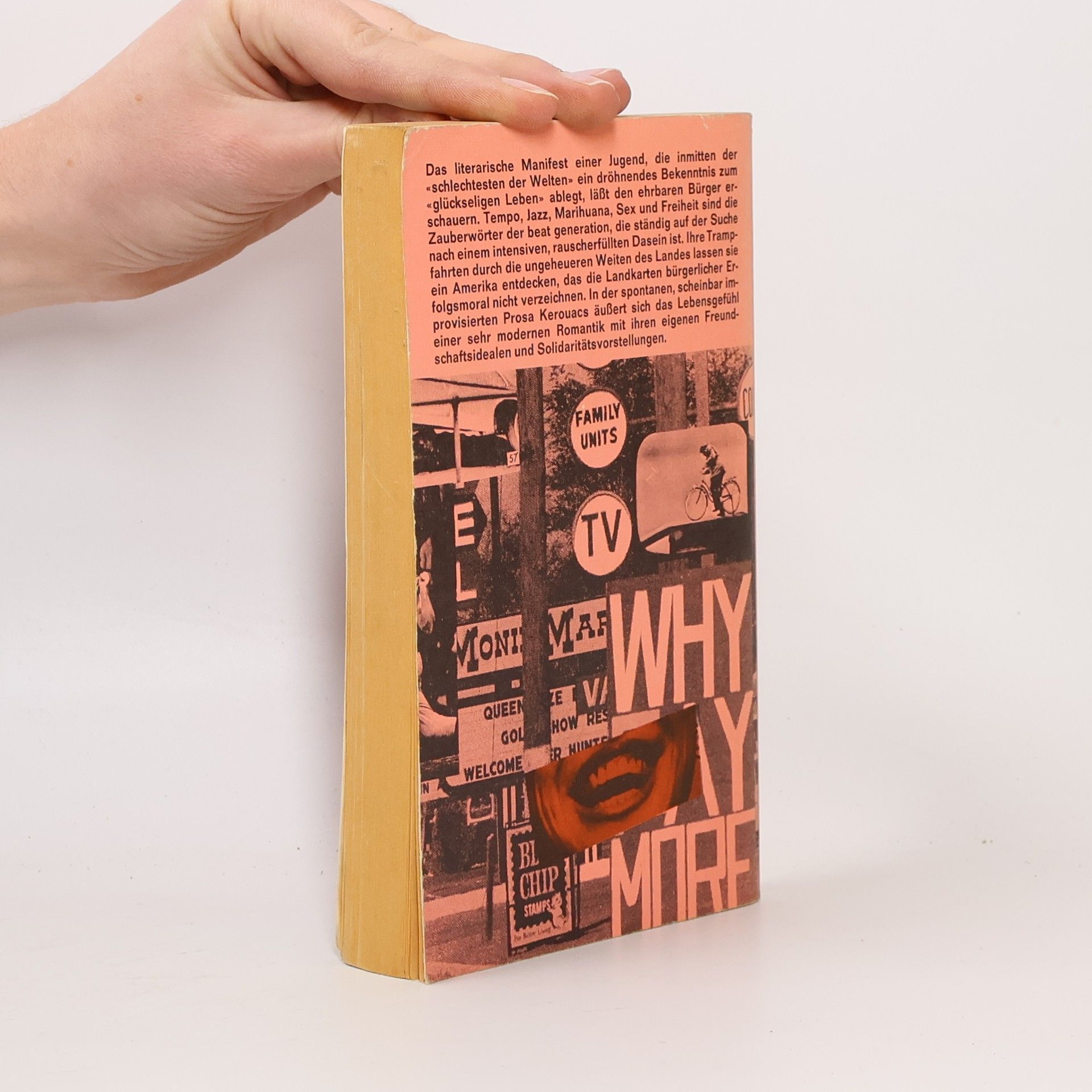 Dies ist das literarische Statement einer Jugend, die inmitten der «schlechtesten der Welten» ein leidenschaftliches Bekenntnis zum «glückseligen Leben» ablegte. Tempo, Jazz, Marihuana, Sex und Freiheit waren die Zauberwörter der Beat Generation, die ständig auf der Suche nach einem intensiven, rauscherfüllten Dasein war. Ihre Trampfahrten durch die ungeheuren Weiten des Landes ließen sie ein Amerika entdecken, das die bürgerliche Erfolgsmoral nicht kannte.