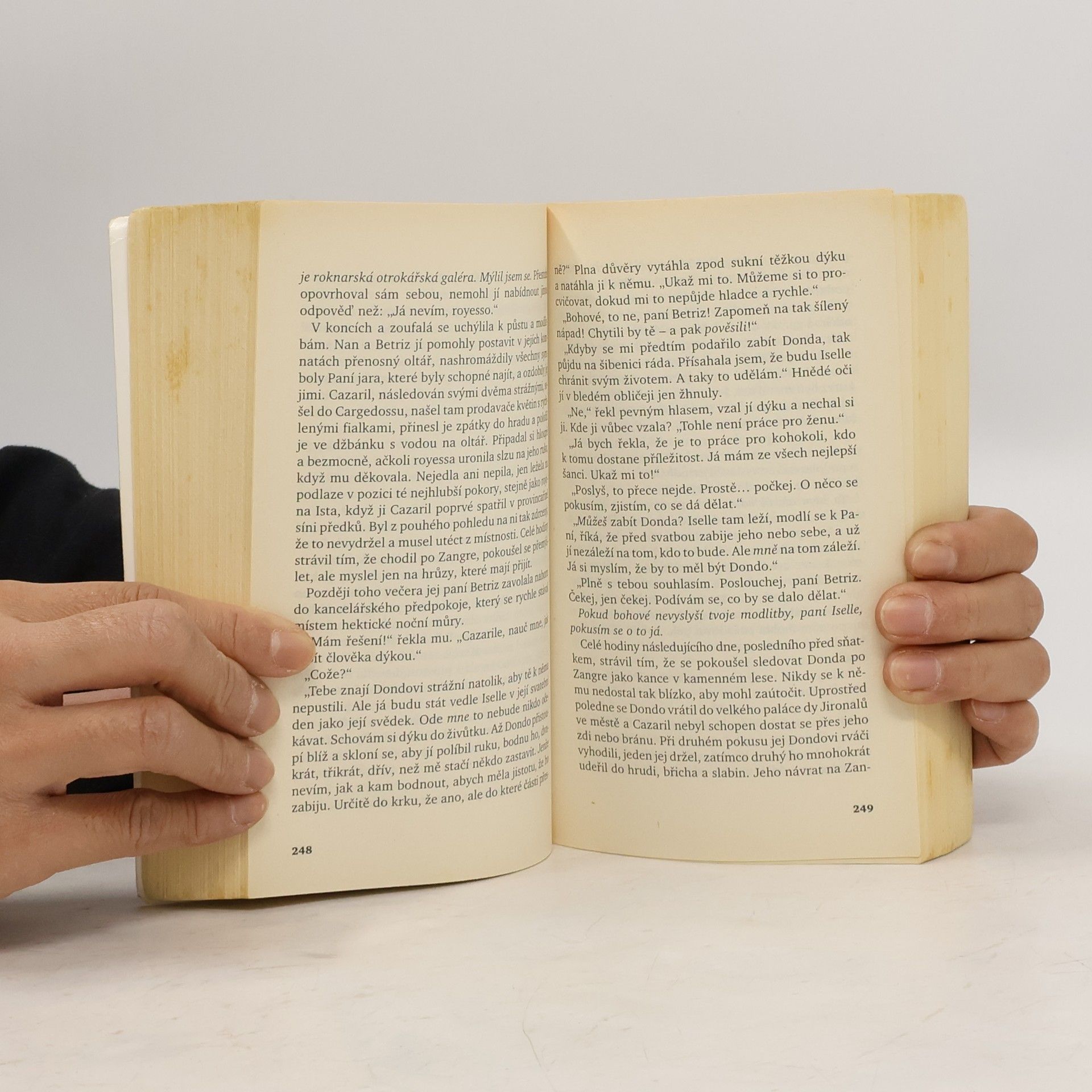 První kniha série Prokletí Chalionu. V předvečer oslav Dne Dcery, jedné z pětice božstev, která vyznávají v chalionském království, přichází do provinčního města Valendy muž zlomený na těle i na duchu – Lupe dy Cazaril, šlechtic a bývalý voják, jenž přežil strašlivé mučení na palubě nepřátelské roknarské galéry. Přichází s úmyslem najít si pro sebe skrovnou obživu v hradu, kde kdysi sloužil jako páže. Bohové však mají s tímto mužem jiné úmysly. Jako nově jmenovaný učitel royessy Iselle, sestry následníka trůnu, musí následovat svou svěřenkyni na místo nejobávanější – ke královskému dvoru v Cargedossu, na mocný hrad Zangre, kde se to jen hemží intrikami a zrádci. Nad Zangre se však vznáší něco mnohem zlověstnějšího – strašlivá kletba táhnoucí se z dávné minulosti, která postihuje všechny příslušníky královské rodiny a jednoho po druhém je postupně ničí. Cazaril sám se ocitá ve smrtelném nebezpečí a ke svému zděšení zjišťuje, že je jediný, kdo dokáže toto temné prokletí z Iselle a celé země sejmout. Napínavý a charakterově bohatý příběh plný magie, odehrávající se ve fiktivním světě inspirovaném středověkým Španělskem, od nositelky mnoha cen Hugo a Nebula.