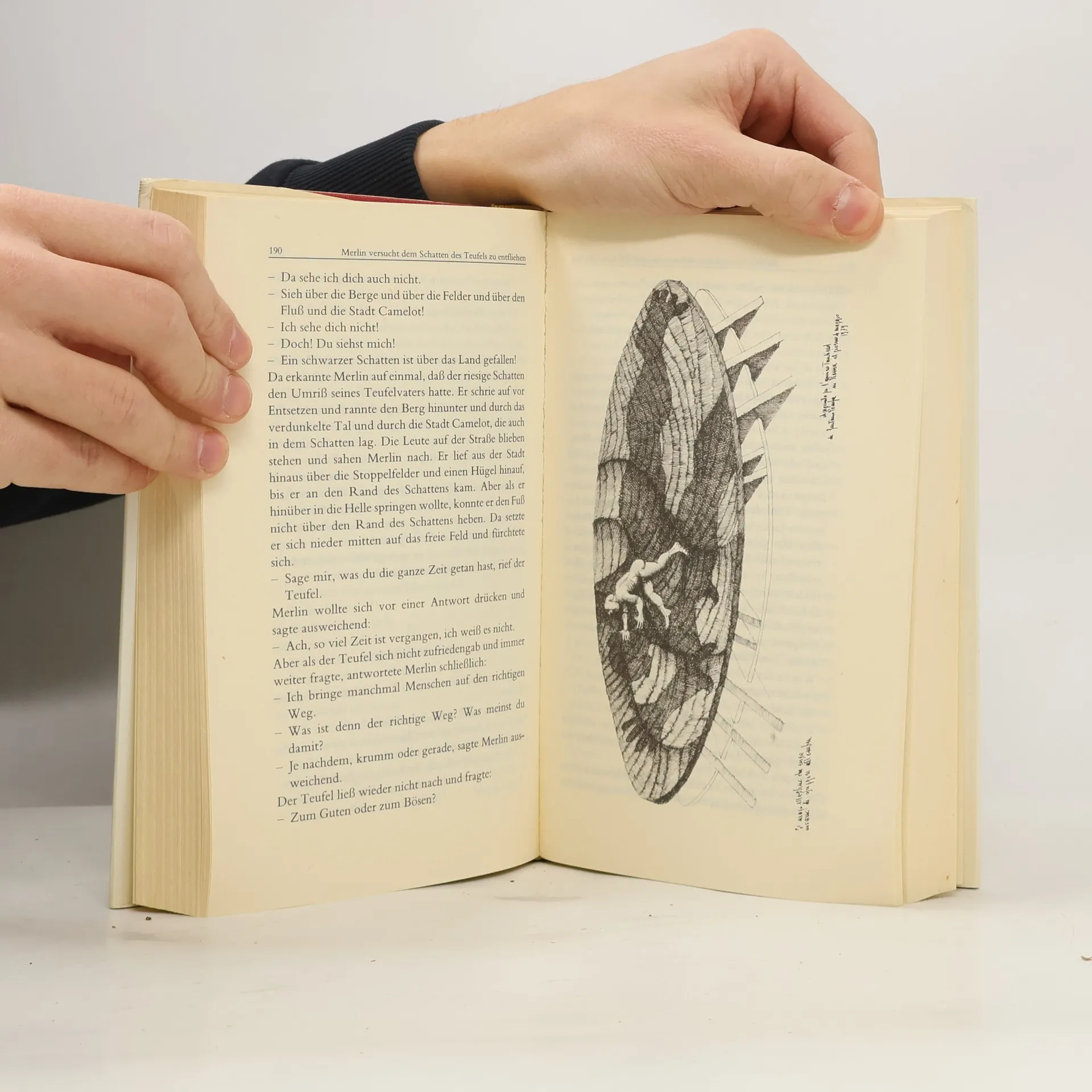 Merlin, ein Sohn des Teufels, wird zum geheimen Inszenator blutiger Ritterschlachten und schaurig-schöner Romanzen in einer Welt, die ein fabelhaftes Mittelalter neben dem 19. und 20. Jahrhundert aufleben läßt und in der sich Vergangenheit und Gegenwart, Vorzeit und Zukunft durchdringen.