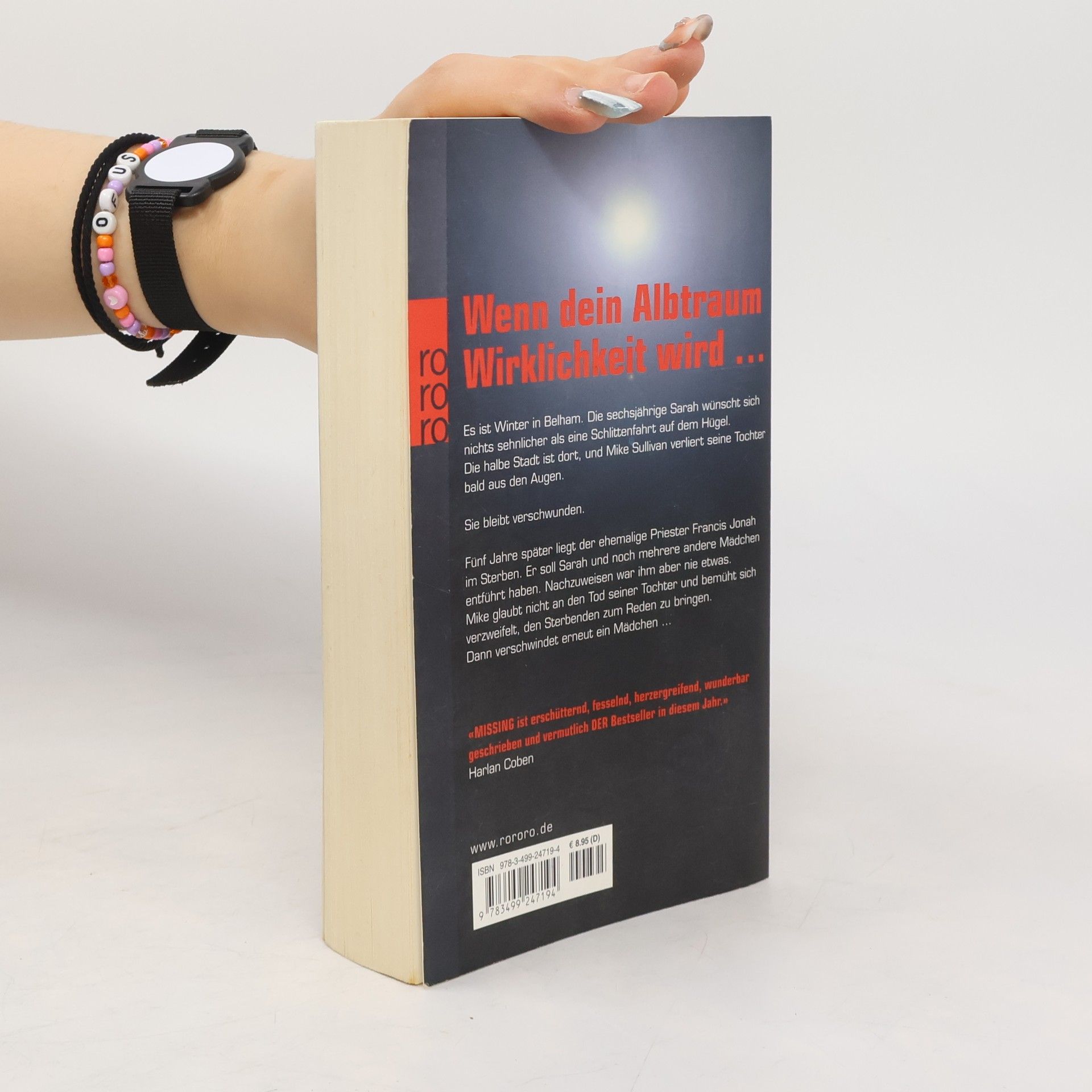 Wenn dein Albtraum Wirklichkeit wird … Es ist Winter in Belham. Die sechsjährige Sarah wünscht sich nichts sehnlicher als eine Schlittenfahrt auf dem Hügel. Die halbe Stadt ist dort und Mike Sullivan verliert seine Tochter bald aus den Augen. Sie bleibt verschwunden. Fünf Jahre später liegt der ehemalige Priester Francis Jonah im Sterben. Er soll Sarah und noch mehrere andere Mädchen entführt haben. Nachzuweisen war ihm aber nie etwas. Mike glaubt nicht an den Tod seiner Tochter. In einem verzweifelten Wettlauf mit der Zeit bemüht er sich, den Sterbenden zum Reden zu bringen. «MISSING ist erschütternd, fesselnd, herzergreifend, wunderbar geschrieben und vermutlich DER Bestseller in diesem Jahr.» (Harlan Coben)