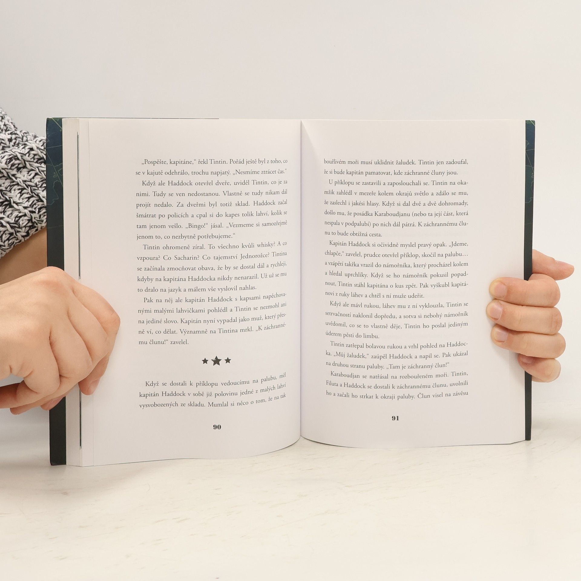 Odvážný reportér Tintin se seznamuje s kapitánem Haddockem a zažívá s ním neuvěřitelné dobrodružství při hledání pokladu. Přitom stále naráží na dvojici popletených agentů Kadlec a Tkadlec. Kniha rozvíjí příběh komiksových alb i samotného filmu a doplňuje je o některé zajímavé detaily a epizody, takže je příjemným počtením pro všechny příznivce Tintina a jeho přátel v čele s věrným psem Filutou.
