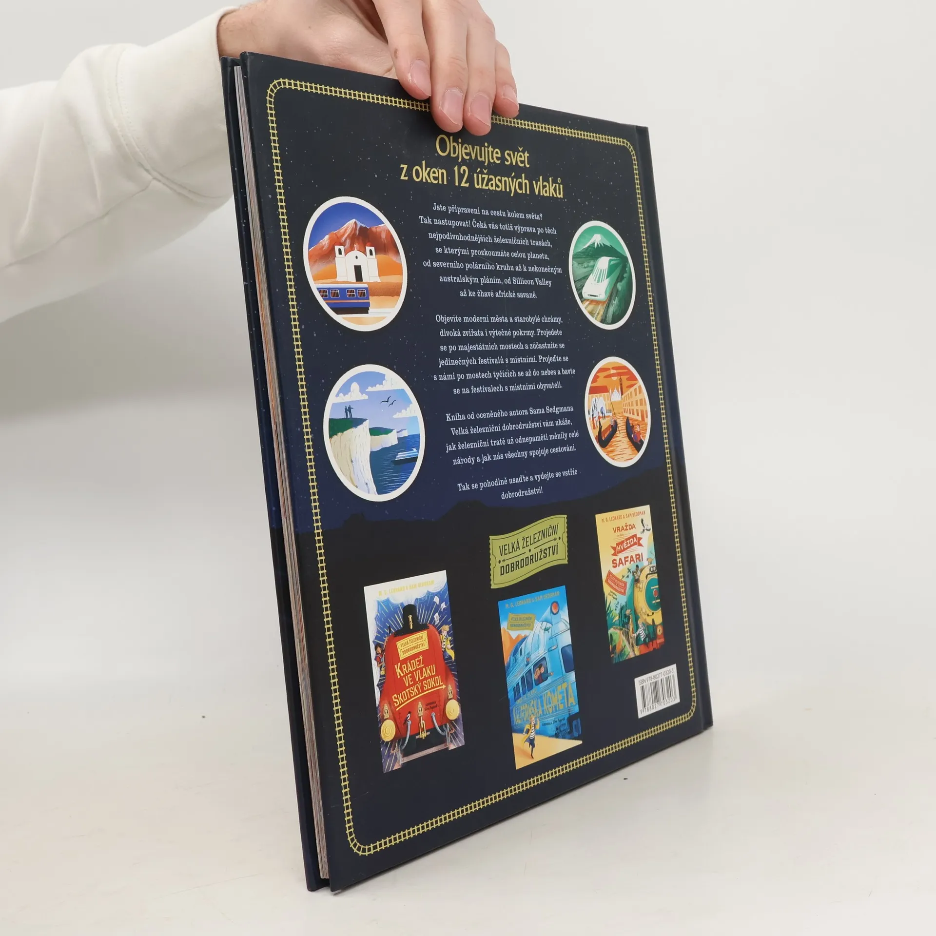 Vydejte se na 12 úžasných výprav po kolejích světa Jste připravení na cestu kolem světa? Tak nastupovat! Čeká vás totiž výprava po těch nejzajímavějších železničních tratích, které se táhnou k Severnímu pólu, po australských pláních, napříč Sillicon Valley, ale i po afrických savanách. Objevíte moderní města a starověké chrámy, divoká zvířata i výtečné pokrmy. Projedete se po majestátních mostech a zúčastníte se jedinečných festivalů s místními. To všechno a mnohem víc spatříte z okna vlaku. Kniha od oceněného autora Sama Sedgmana, Dobrodružné výpravy, vám ukáže, jak železniční tratě už odnepaměti měnily celé národy a jak nás všechny spojuje cestování. Tak se pohodlně usaďte a vydejte se vstříc dobrodružství!