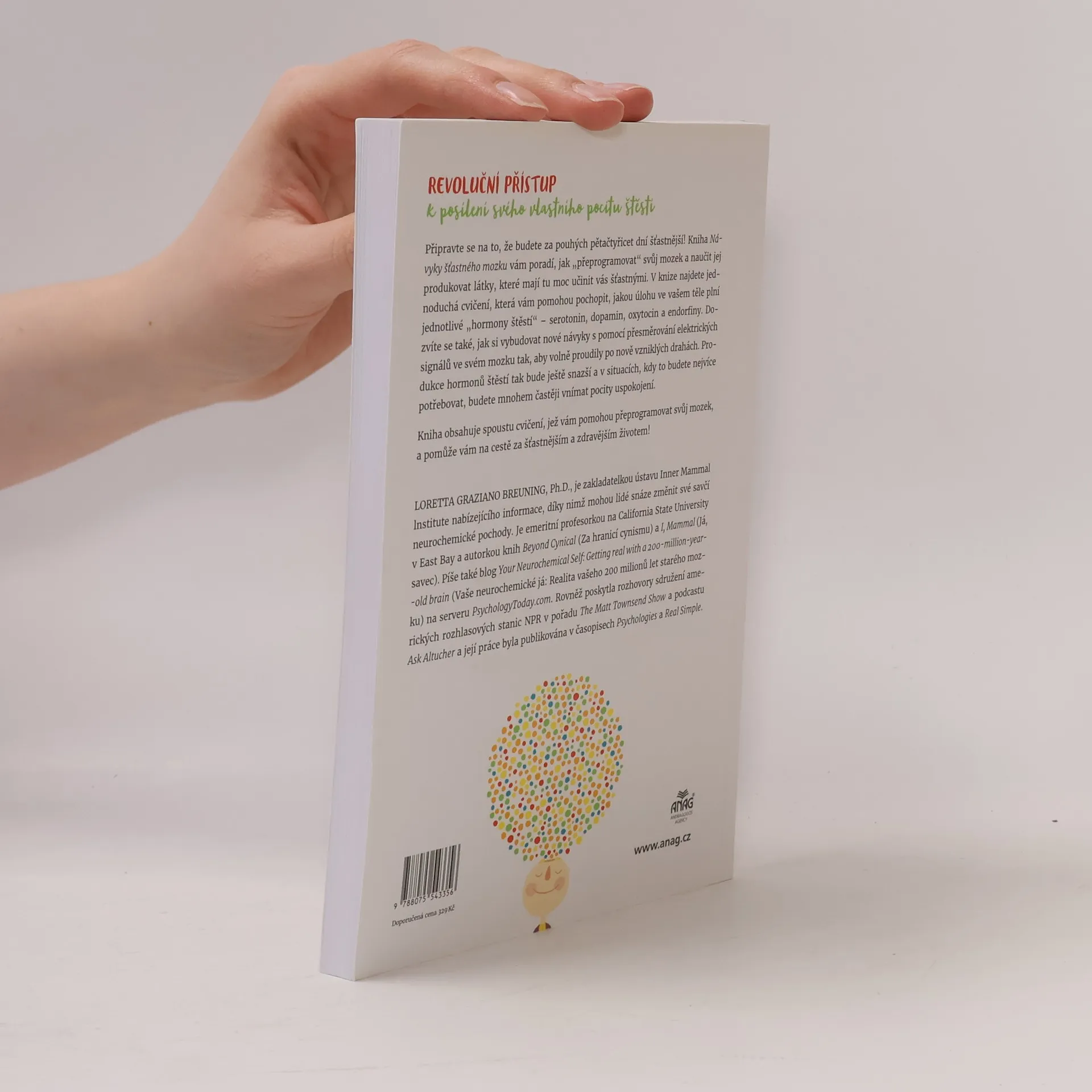 Připravte se na to, že budete za pouhých pětačtyřicet dní šťastnější! Kniha Návyky šťastného mozku vám poradí, jak „přeprogramovat“ svůj mozek a naučit jej produkovat látky, které mají tu moc učinit vás šťastnými. V knize najdete jednoduchá cvičení, která vám pomohou pochopit, jakou úlohu ve vašem těle plní jednotlivé „hormony štěstí“ – serotonin, dopamin, oxytocin a endorfiny. Dozvíte se také, jak si vybudovat nové návyky s pomocí přesměrování elektrických signálů ve svém mozku tak, aby volně proudily po nově vzniklých drahách. Produkce hormonů štěstí tak bude ještě snazší a v situacích, kdy to budete nejvíce potřebovat, budete mnohem častěji vnímat pocity uspokojení. Kniha obsahuje spoustu cvičení, jež vám pomohou přeprogramovat svůj mozek, a pomůže vám na cestě za šťastnějším a zdravějším životem!