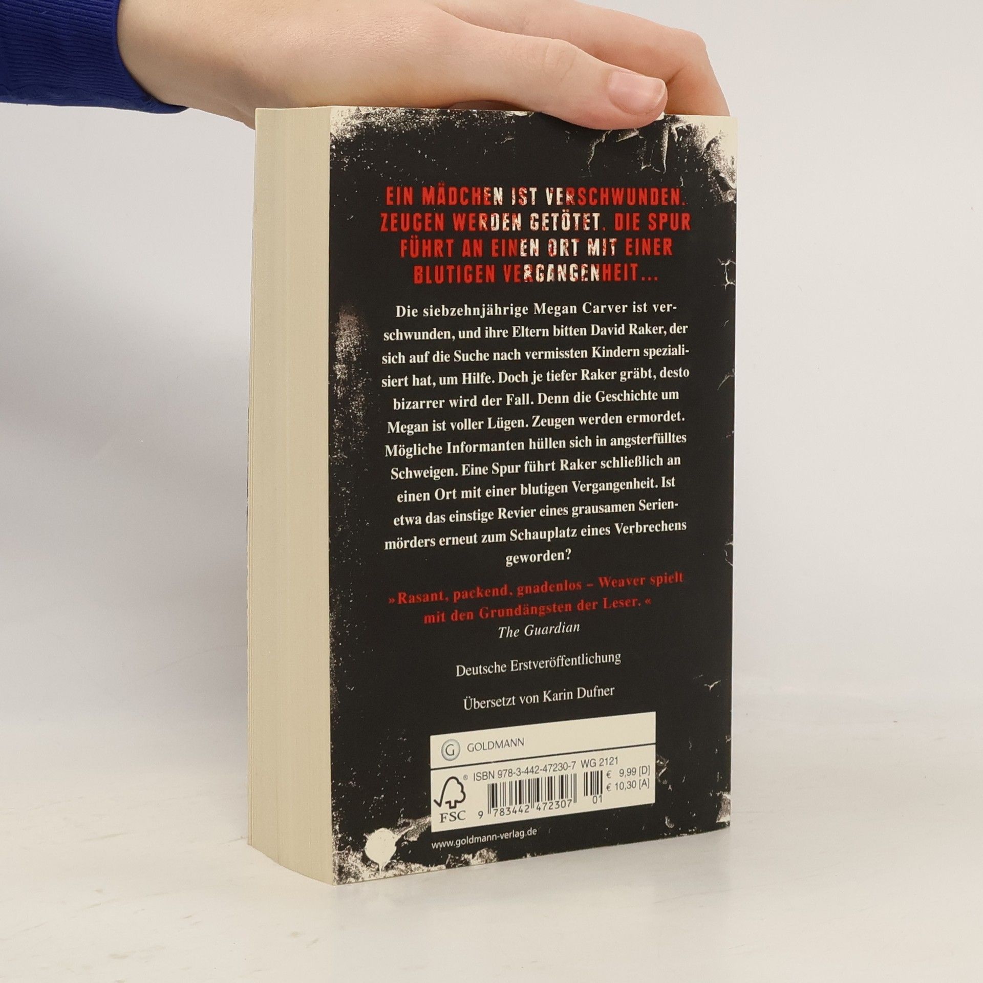 Ein Mädchen ist verschwunden. Zeugen wurden getötet. Die Spur führt in das Revier eines Serienmörders ... Die 17-jährige Megan Carver ist verschwunden, und ihre Eltern bitten David Raker, der sich auf die Suche nach vermissten Kindern spezialisiert hat, um Hilfe. Doch je mehr Raker sich des Falles annimmt, desto bizarrer wird er. Die Geschichte um Megan ist voller Lügen. Zeugen werden ermordet. Die übrigen Informanten hüllen sich in Schweigen. Eine Spur führt Raker an einen Ort mit einer blutigen Vergangenheit. Ist etwa das einstige Revier eines skrupellosen Serienmörders erneut zum Schauplatz eines Verbrechens geworden? Tim Weaver, geboren 1977, ist Journalist und lebt mit seiner Frau und seiner Tochter in der Nähe von Bath. Nach 'Totgesagt' ist 'Blutiges Schweigen' sein zweiter Roman mit dem Ermittler David Raker.