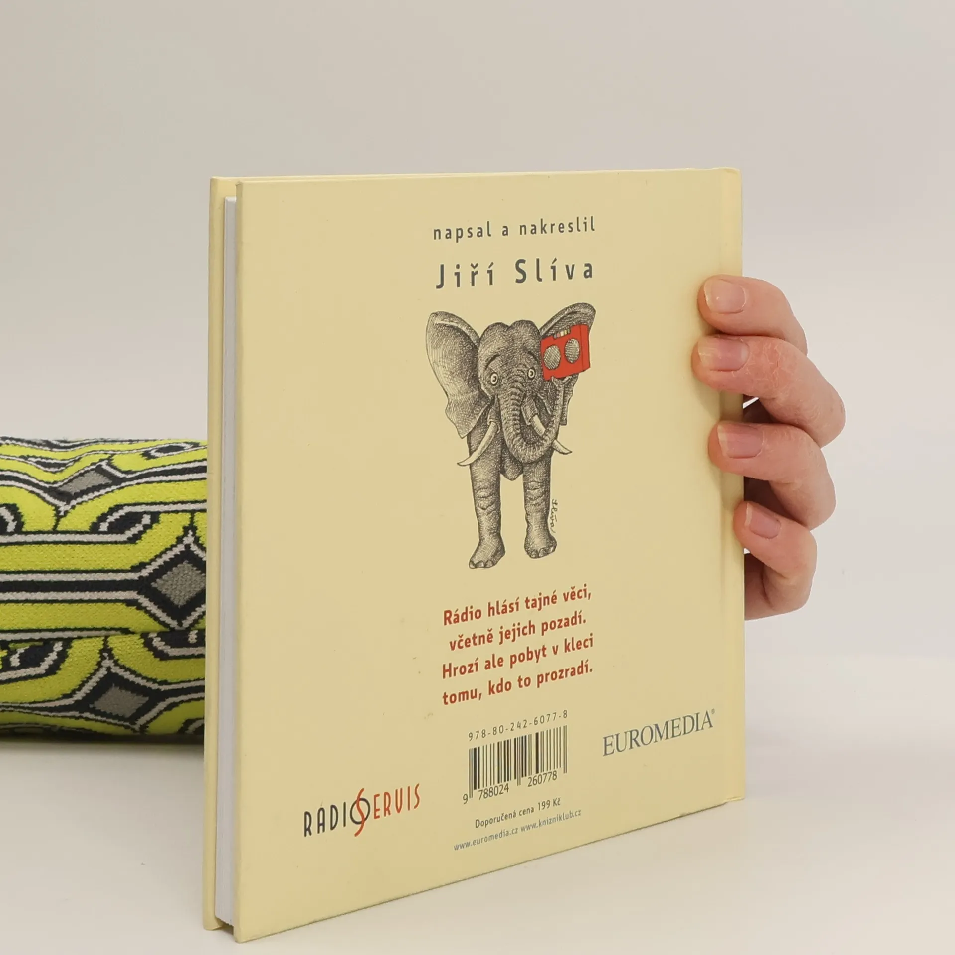 Nová autorská knížka známého českého kreslíře Jiřího Slívy plná veselých i bláznivých básniček je určena ke společnému rodinnému čtení. U některých veršů se zasmějí spíš děti, u některých zase dospělí, barevné ilustrace v nezaměnitelném stylu potěší všechny bez rozdílu. Co báseň, to podivné hlášení rozhlasu: třeba inzerát na pustý ostrov pro trosečníky, zpráva o tom, že hloupý Honza vyletěl na raketě do vesmíru, že v jednom bazénu žije mořská panna, v jednom kurníku vyměnili žebřík za klávesnici, aby to slepicím pěkně hrálo, nebo že se na Prahu řítí gigantické slevy…