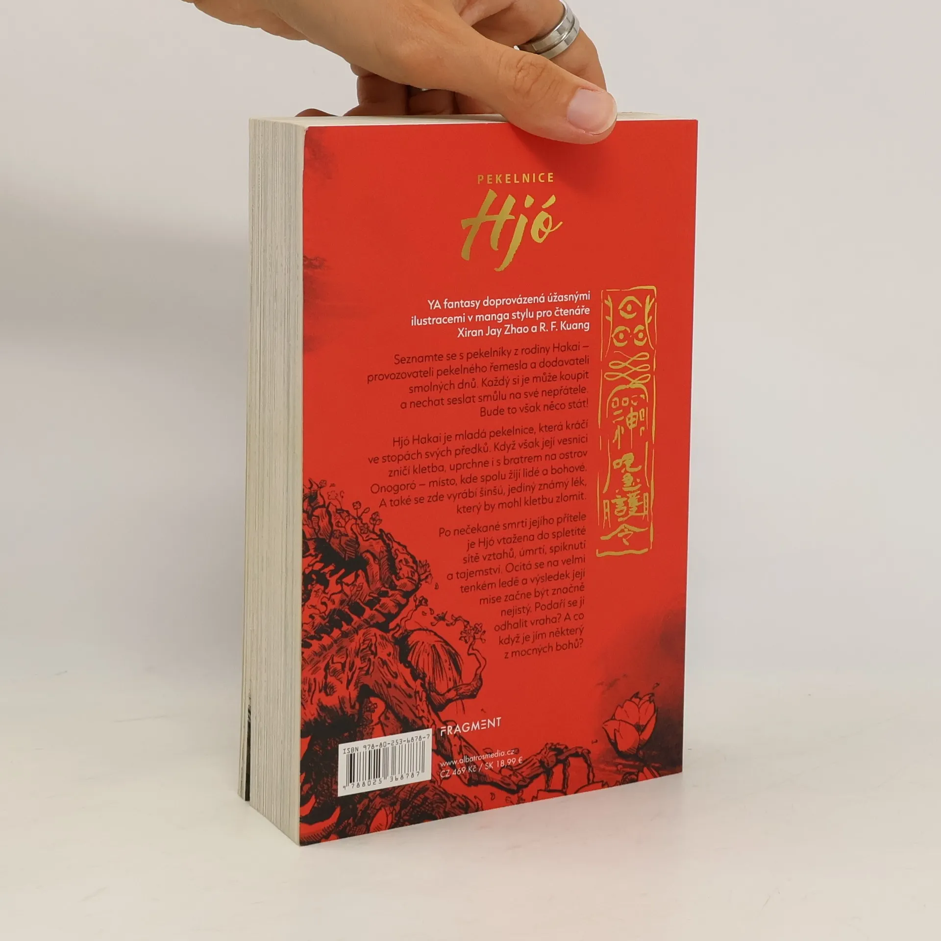 Bohatě ilustrovaný YA fantasy román, stylem připomínající mangu. Aby zbavila vesnici prokletí, Hjó musí splnit přání démonky a přinést neštěstí na ostrov bohů. Hjó Hakai je mladá pekelnice, u které si můžete koupit smolný den a nechat ho seslat na své nepřátele. Smůla se však nevyhýbá ani pekelníkům, a když je na její vesnici seslána kletba, musí Hjó i se svým bratrem uprchnout. Lék na kletbu vyrazí hledat na ostrov Onogoró - místo, kde spolu žijí lidé a bohové. Po nečekané smrti přítele je Hjó vtažena do spletité sítě vztahů, úmrtí, spiknutí a tajemství. Nakladatelská anotace. Kráceno.