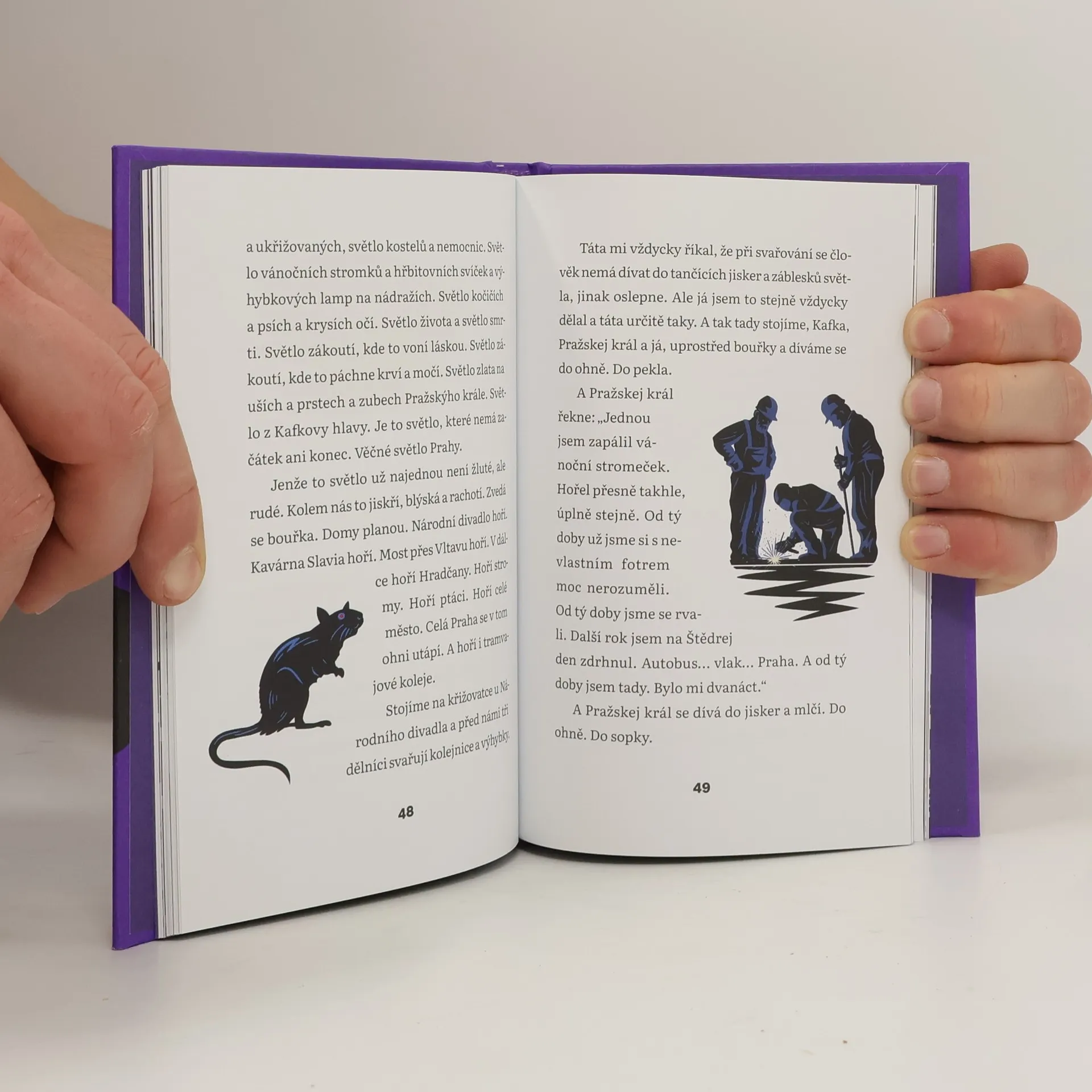 Dvacet let po vydání Aloise Nebela se Jaroslav Rudiš a ilustrátor Jaromír 99 opět setkávají v tomto literárním počinu, který je poctou nejen české metropoli a její historii, ale zejména lidem, kteří se někdy v životě cítí úplně sami. Je Štědrý večer a na pražské hlavní nádraží přijíždí vlakem z Berlína autor této knihy. Kamarádům, se kterými se měl potkat, se nemůže dovolat, a tak se vydá do města sám. Padá sníh, ulice jsou prázdné, zdánlivě nejklidnější den v roce. První pivo si dá v hospodě U Černého vola a postupně potká další samotáře - muže, který si říká Kavka a jehož hlava svítí jako plynová lucerna, Krále Prahy, který má klíče od celého města, a půvabnou Italku, vdovu z Milána, jejíž manžel si celý život přál řídit tramvaj podél Vltavy... Čtyři náhodní přátelé putují nočním městem a čekají na zázrak. Daleko od přeplněných vánočních trhů a konzumního šílenství se odehrává kontemplativní příběh, kde melancholické okamžiky střídají vtipné dialogy a mluví se nejen o lásce, literatuře a pivu, ale i o kaprech, kterým z očí koukají zemřelí obyvatelé města. Nakladatelská anotace. Kráceno.