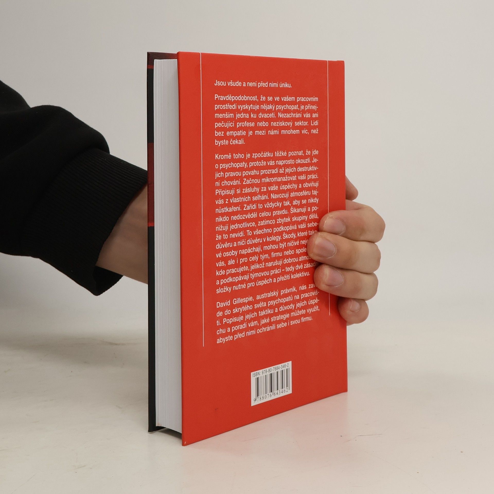 Jsou všude a není před nimi úniku. Pravděpodobnost, že se ve vašem pracovním prostředí vyskytuje nějaký psychopat, je přinejmenším jedna ku dvaceti. Nezachrání vás ani pečující profese nebo neziskový sektor. Lidí bez empatie je mezi námi mnohem víc, než byste čekali. Kromě toho je zpočátku těžké poznat, že jde o psychopaty, protože vás naprosto okouzlí. Jejich pravou povahu prozradí až jejich destruktivní chování. Začnou mikromanažovat vaši práci. Připisují si zásluhy za vaše úspěchy a obviňují vás z vlastních selhání. Navozují atmosféru tajnůstkaření. Zařídí to vždycky tak, aby se nikdy nikdo nedozvěděl celou pravdu. Šikanují a ponižují jednotlivce, zatímco zbytek skupiny dělá, že to nevidí. To všechno podkopává vaši sebedůvěru a ničí důvěru v kolegy. Škody, které takové osoby napáchají, mohou být ničivé nejen pro vás, ale i pro celý tým, firmu nebo společnost, kde pracujete, jelikož narušují dobrou atmosféru a podkopávají týmovou práci – tedy dvě zásadní složky nutné pro úspěch a přežití kolektivu. David Gillespie, australský právník, nás zavede do skrytého světa psychopatů na pracovišti. Popisuje jejich taktiku a důvody jejich úspěchu a poradí vám, jaké strategie můžete využít, abyste před nimi ochránili sebe i svou firmu.