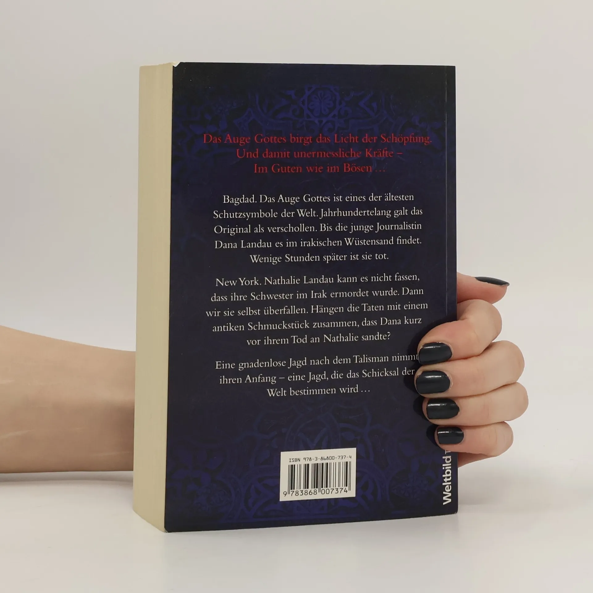 Das Auge Gottes birgt das Licht der Schöpfung. Und damit unermessliche Kräfte – im Guten wie im Bösen ...Bagdad. Das Auge Gottes ist eines der ältesten Schutzsymbole der Welt. Jahrhundertelang galt das Original als verschollen. Bis die junge Journalistin Dana Landau es im irakischen Wüstensand findet. Wenige Stunden später ist sie tot.New York. Nathalie Landau kann es nicht fassen, dass ihre Schwester im Irak ermordet wurde. Dann wird sie selbst überfallen. Hängen die Taten mit dem antiken Schmuckstück zusammen, das Dana kurz vor ihrem Tod an Nathalie sandte?Eine gnadenlose Jagd nach dem Talisman nimmt ihren Anfang – eine Jagd, die das Schicksal der Welt bestimmen wird ...