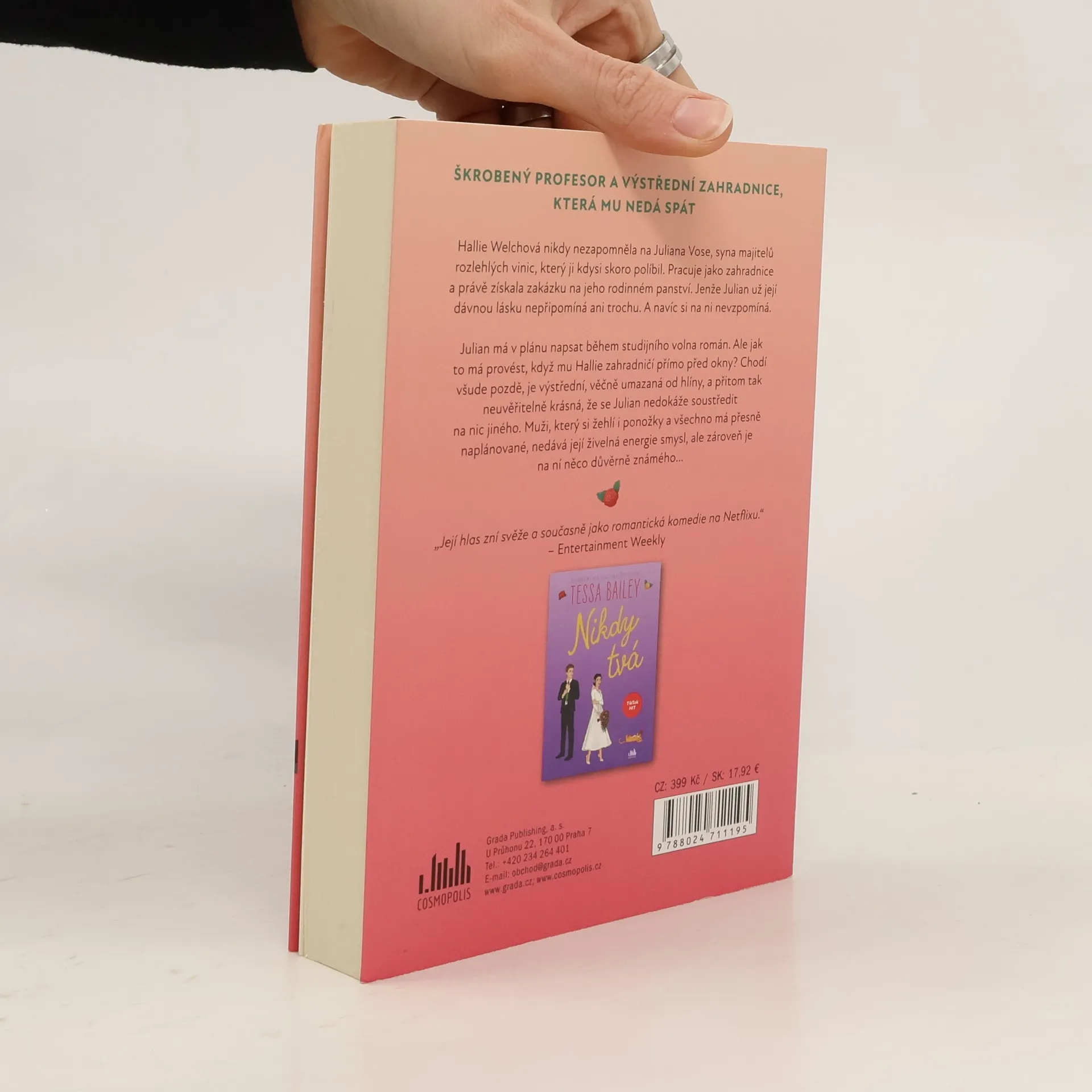 Hallie Welchová nikdy nezapomněla na Juliana Vose, syna majitelů rozlehlých vinic, který ji kdysi skoro políbil. Pracuje jako zahradnice a právě získala zakázku na jeho rodinném panství. Jenže Julian už její dávnou lásku nepřipomíná ani trochu. A navíc si na ni nevzpomíná. Julian má v plánu napsat během studijního volna román. Ale jak to má provést, když mu Hallie zahradničí přímo před okny? Chodí všude pozdě, je výstřední, věčně umazaná od hlíny, a přitom tak neuvěřitelně krásná, že se Julian nedokáže soustředit na nic jiného. Muži, který si žehlí i ponožky a všechno má přesně naplánované, nedává její živelná energie smysl, ale zároveň je na ní něco důvěrně známého…
