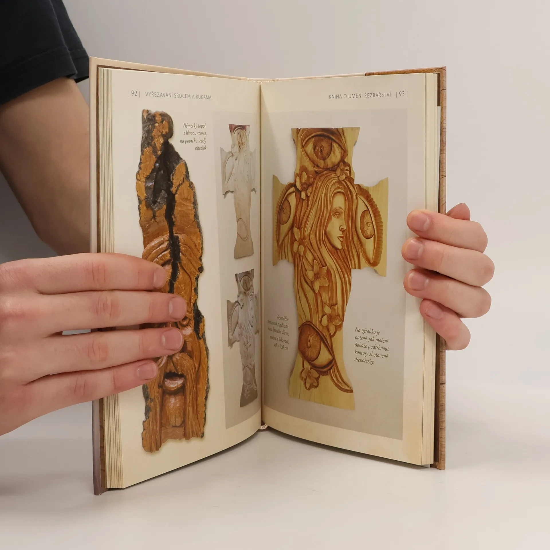 Průvodce pro začátečníky i pokročilé řemeslníky. V knize najdete ucelený pohled na řezbářskou dílnu i práci s nářadím. Vedle strukturovaných kapitol o pracovním procesu se kniha věnuje i praktickým dovednostem. Autentické postupy a kreativní tipy na práci s řezbářským nářadím od základních technik a držení nářadí až po pokročilé techniky reliéfní řezby a tvarování jsou ukázány na fotografiích vytvořených děl. Vyřezávání srdcem a rukama je knihou pro každého, kdo touží zhmotnit svou kreativitu do dřeva.