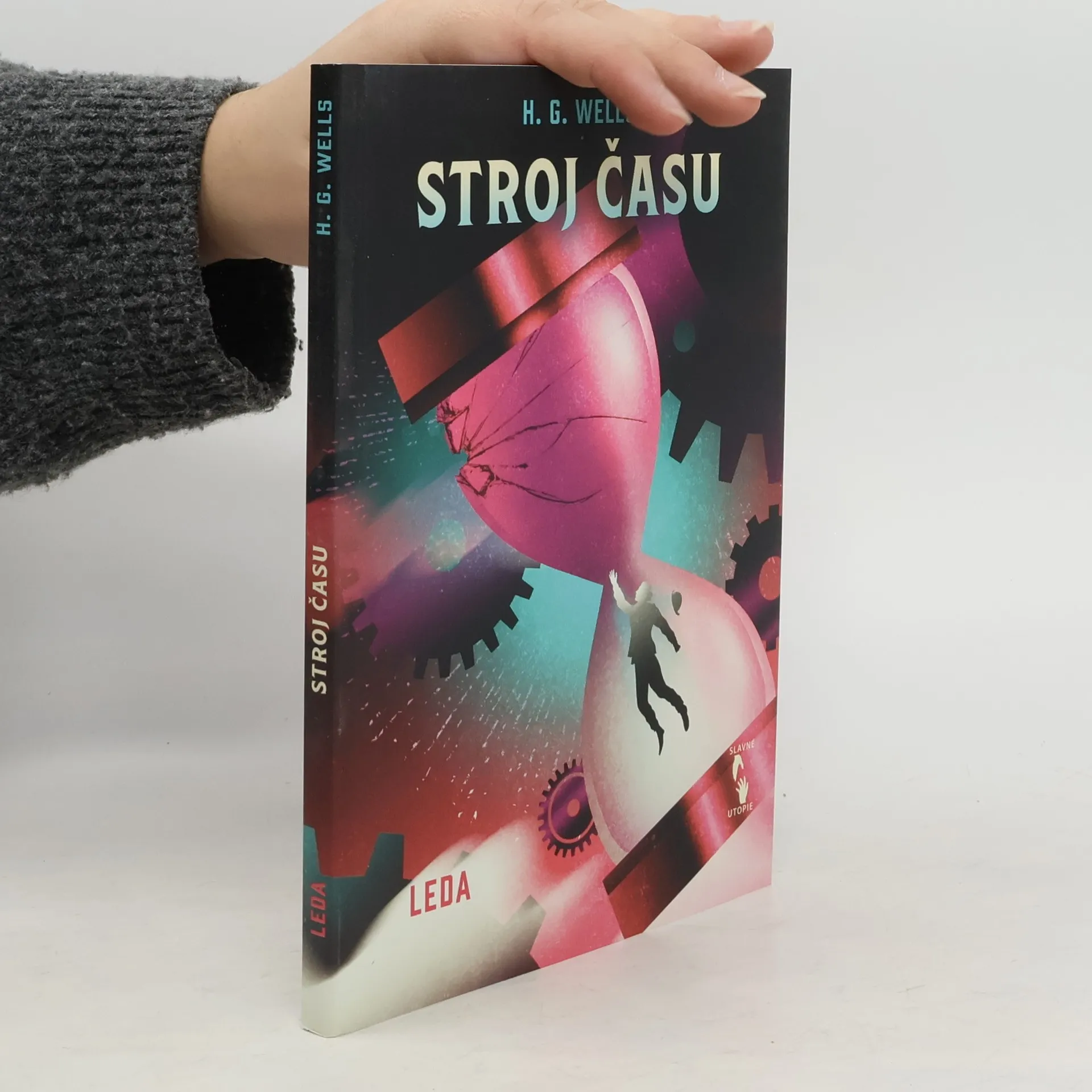 Tohle je moment, kdy se začalo odvíjet klubko podivuhodných událostí: slavnostní večeře v domě bohatého vynálezce posedlého svými výzkumy. V těch chvílích spatří světlo světa fantaskně romantický, místy děsivý, úžasný a strnulým rozumem neproniknutelný vynálezcův příběh – neuvěřitelné dobrodružství novodobého Gullivera odehrávající se v buducnosti vzdálené statisíce let. Ale nejen to: zároveň se zrodí první kniha popularizující pojem cestování v čase, a také jedna z prvních knížek přinášejících fanouškům beletrie žánr sci-fi. Když vynálezce zabrzdí svůj stroj v Londýně na prahu 8028. století, bohužel ho nevítá krásný nový svět hemžící se nevídanými výdobytky vědy i techniky a prodchnutý všeobjímajícím humanismem. Z všemocného lidstva, jež si slibovalo „zlatý věk“, zbyly jen roztříštěné houfy človíčků tělesně i duševně připomínajících děti, které se v polorozpadlých zříceninách děsí tmy a každého šramotu v ní… Jde dodnes o jeden z nejpůsobivějších a nejvlivnějších románů sci-fi, jaké byly kdy napsány, román zároveň napojený na vývojovou linii varovně pochmurných utopických děl, jež zachycují lidstvo, Zemi a dokonce snad celý vesmír ve stavu pokročilého úpadku a návratu k primitivnímu způsobu života. Kudy se vydáme, aby k tomuhle vývoji nedošlo?