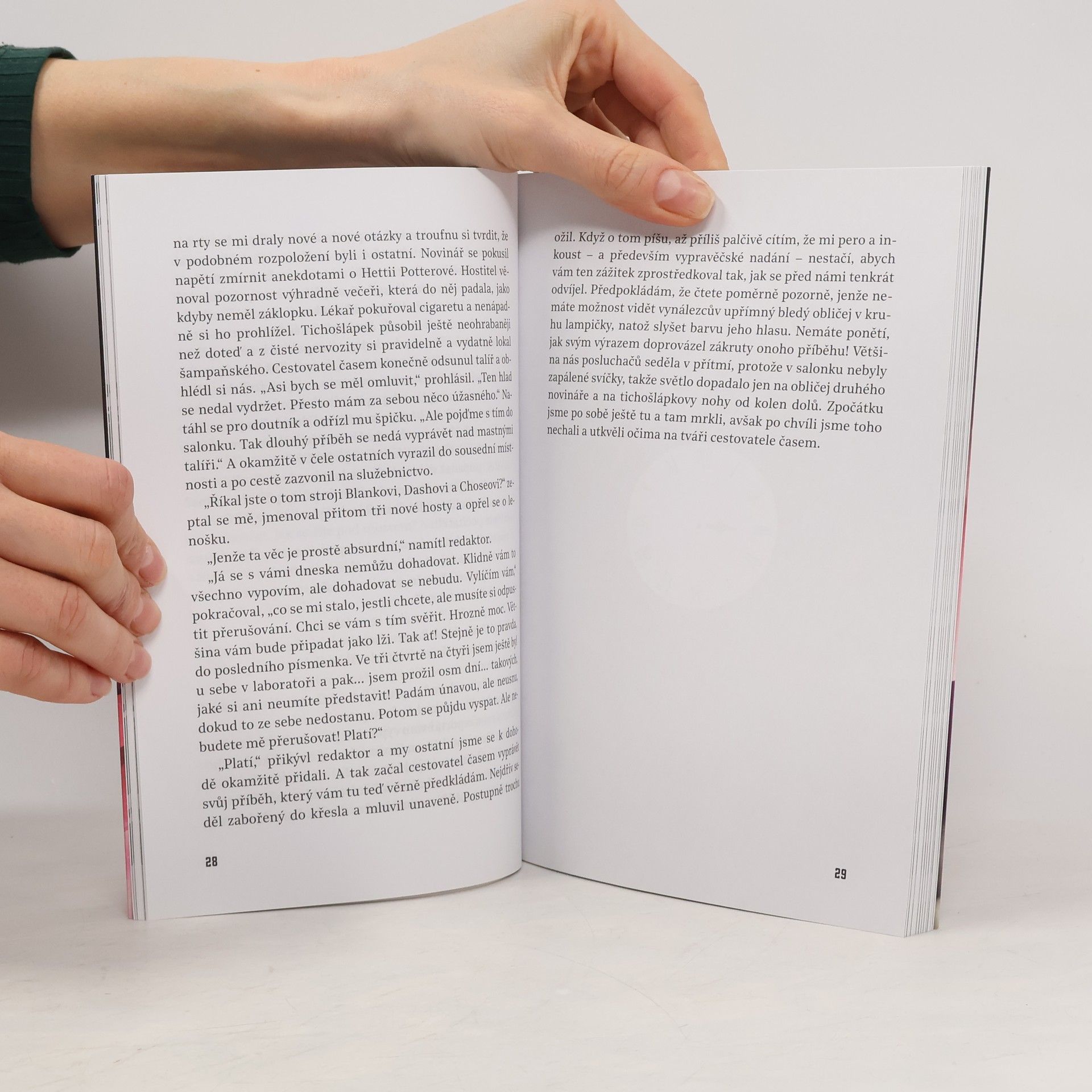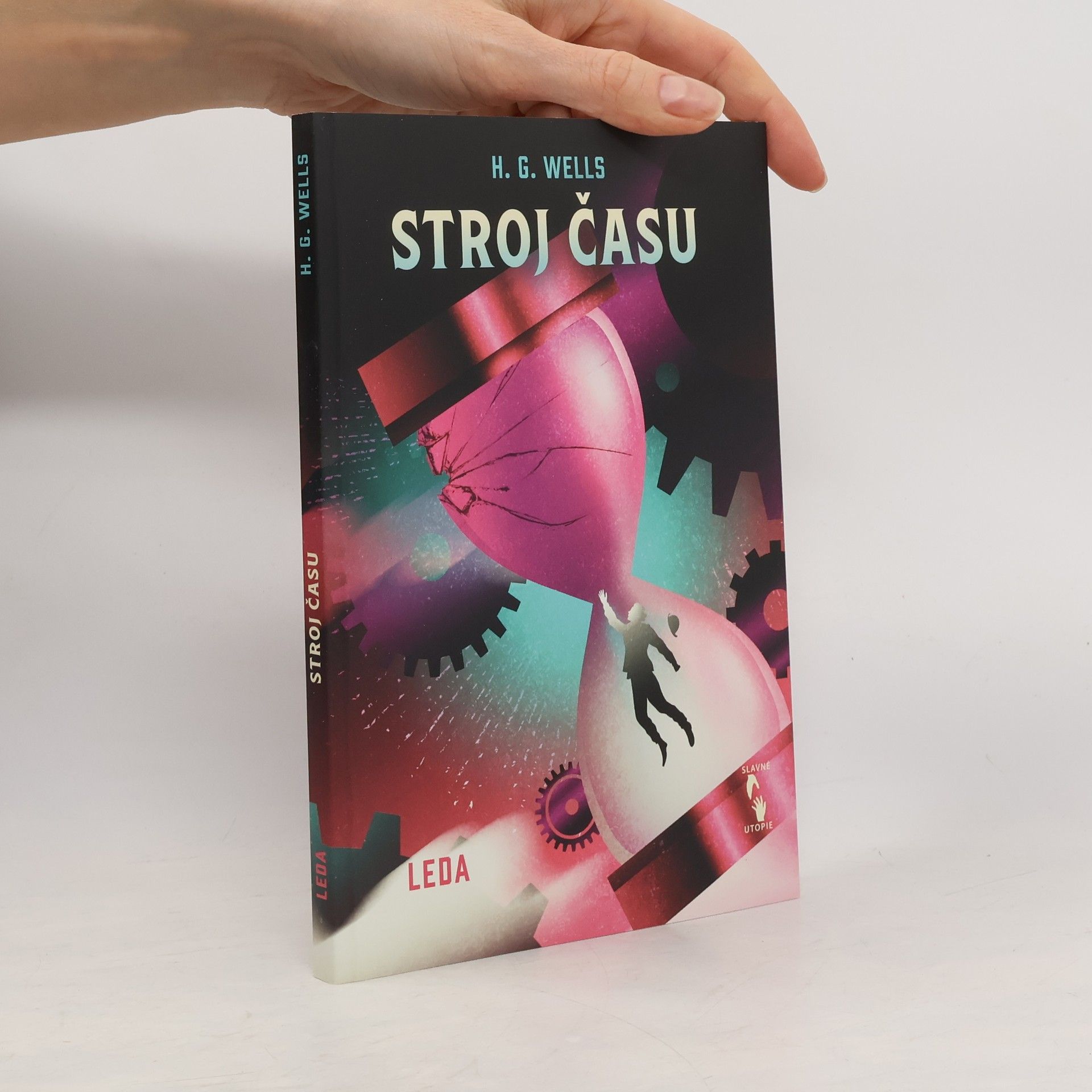 Tohle je moment, kdy se začalo odvíjet klubko podivuhodných událostí: slavnostní večeře v domě bohatého vynálezce posedlého svými výzkumy. V těch chvílích spatří světlo světa fantaskně romantický, místy děsivý, úžasný a strnulým rozumem neproniknutelný vynálezcův příběh – neuvěřitelné dobrodružství novodobého Gullivera odehrávající se v buducnosti vzdálené statisíce let. Ale nejen to: zároveň se zrodí první kniha popularizující pojem cestování v čase, a také jedna z prvních knížek přinášejících fanouškům beletrie žánr sci-fi. Když vynálezce zabrzdí svůj stroj v Londýně na prahu 8028. století, bohužel ho nevítá krásný nový svět hemžící se nevídanými výdobytky vědy i techniky a prodchnutý všeobjímajícím humanismem. Z všemocného lidstva, jež si slibovalo „zlatý věk“, zbyly jen roztříštěné houfy človíčků tělesně i duševně připomínajících děti, které se v polorozpadlých zříceninách děsí tmy a každého šramotu v ní… Jde dodnes o jeden z nejpůsobivějších a nejvlivnějších románů sci-fi, jaké byly kdy napsány, román zároveň napojený na vývojovou linii varovně pochmurných utopických děl, jež zachycují lidstvo, Zemi a dokonce snad celý vesmír ve stavu pokročilého úpadku a návratu k primitivnímu způsobu života. Kudy se vydáme, aby k tomuhle vývoji nedošlo?
