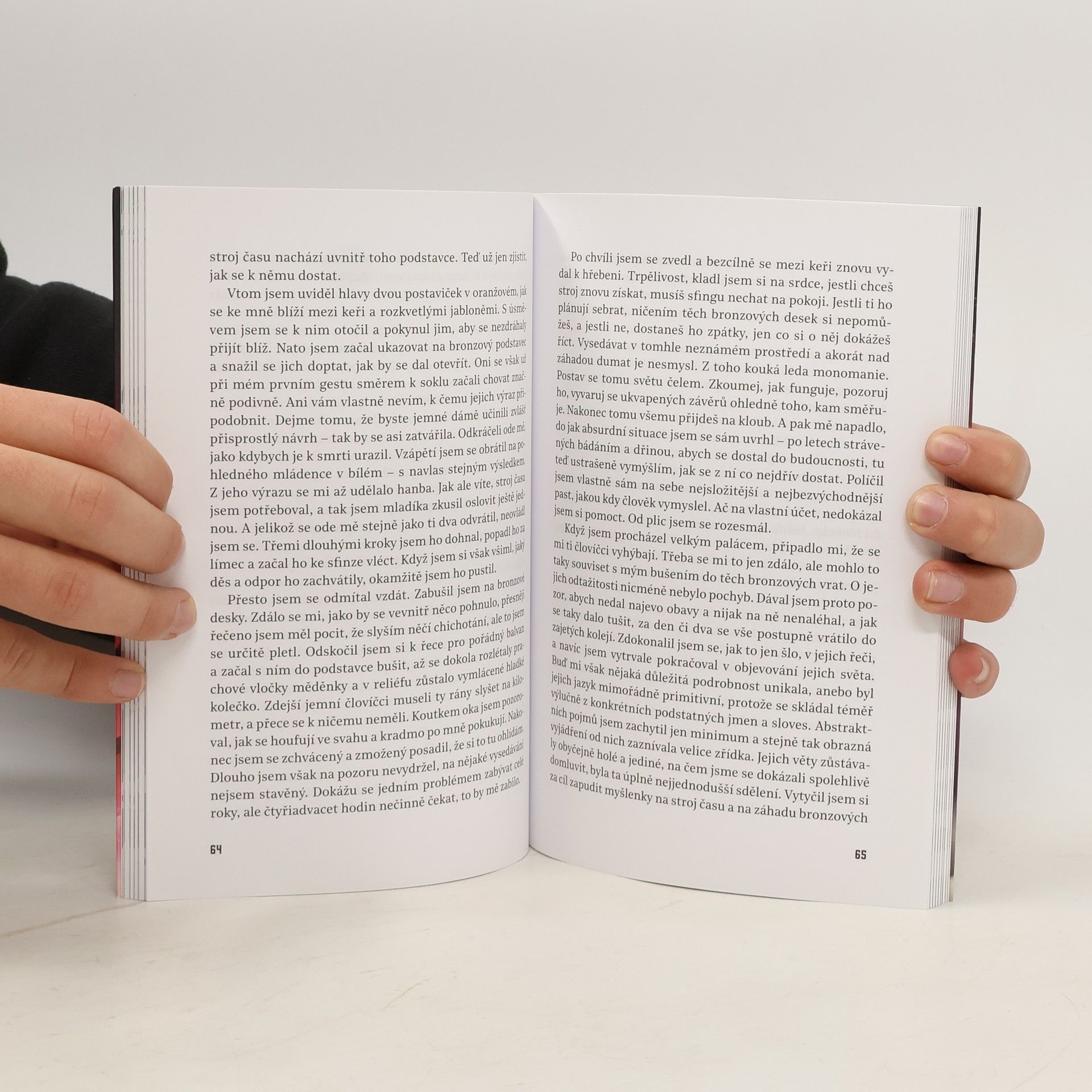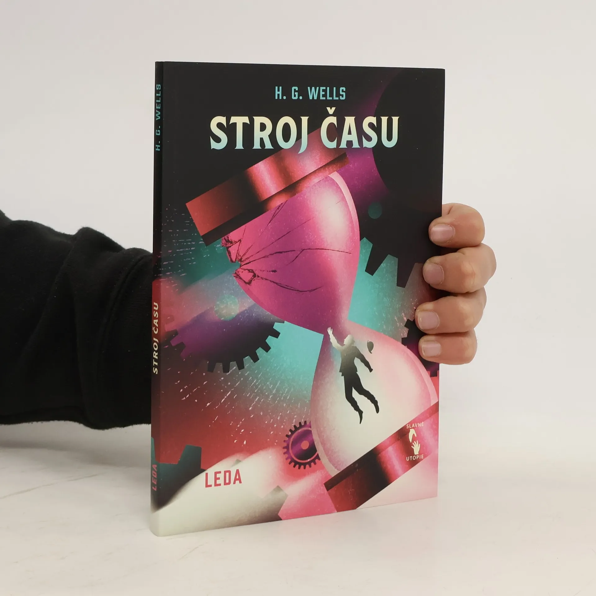 Tohle je moment, kdy se začalo odvíjet klubko podivuhodných událostí: slavnostní večeře v domě bohatého vynálezce posedlého svými výzkumy. V těch chvílích spatří světlo světa fantaskně romantický, místy děsivý, úžasný a strnulým rozumem neproniknutelný vynálezcův příběh – neuvěřitelné dobrodružství novodobého Gullivera odehrávající se v buducnosti vzdálené statisíce let. Ale nejen to: zároveň se zrodí první kniha popularizující pojem cestování v čase, a také jedna z prvních knížek přinášejících fanouškům beletrie žánr sci-fi. Když vynálezce zabrzdí svůj stroj v Londýně na prahu 8028. století, bohužel ho nevítá krásný nový svět hemžící se nevídanými výdobytky vědy i techniky a prodchnutý všeobjímajícím humanismem. Z všemocného lidstva, jež si slibovalo „zlatý věk“, zbyly jen roztříštěné houfy človíčků tělesně i duševně připomínajících děti, které se v polorozpadlých zříceninách děsí tmy a každého šramotu v ní… Jde dodnes o jeden z nejpůsobivějších a nejvlivnějších románů sci-fi, jaké byly kdy napsány, román zároveň napojený na vývojovou linii varovně pochmurných utopických děl, jež zachycují lidstvo, Zemi a dokonce snad celý vesmír ve stavu pokročilého úpadku a návratu k primitivnímu způsobu života. Kudy se vydáme, aby k tomuhle vývoji nedošlo?