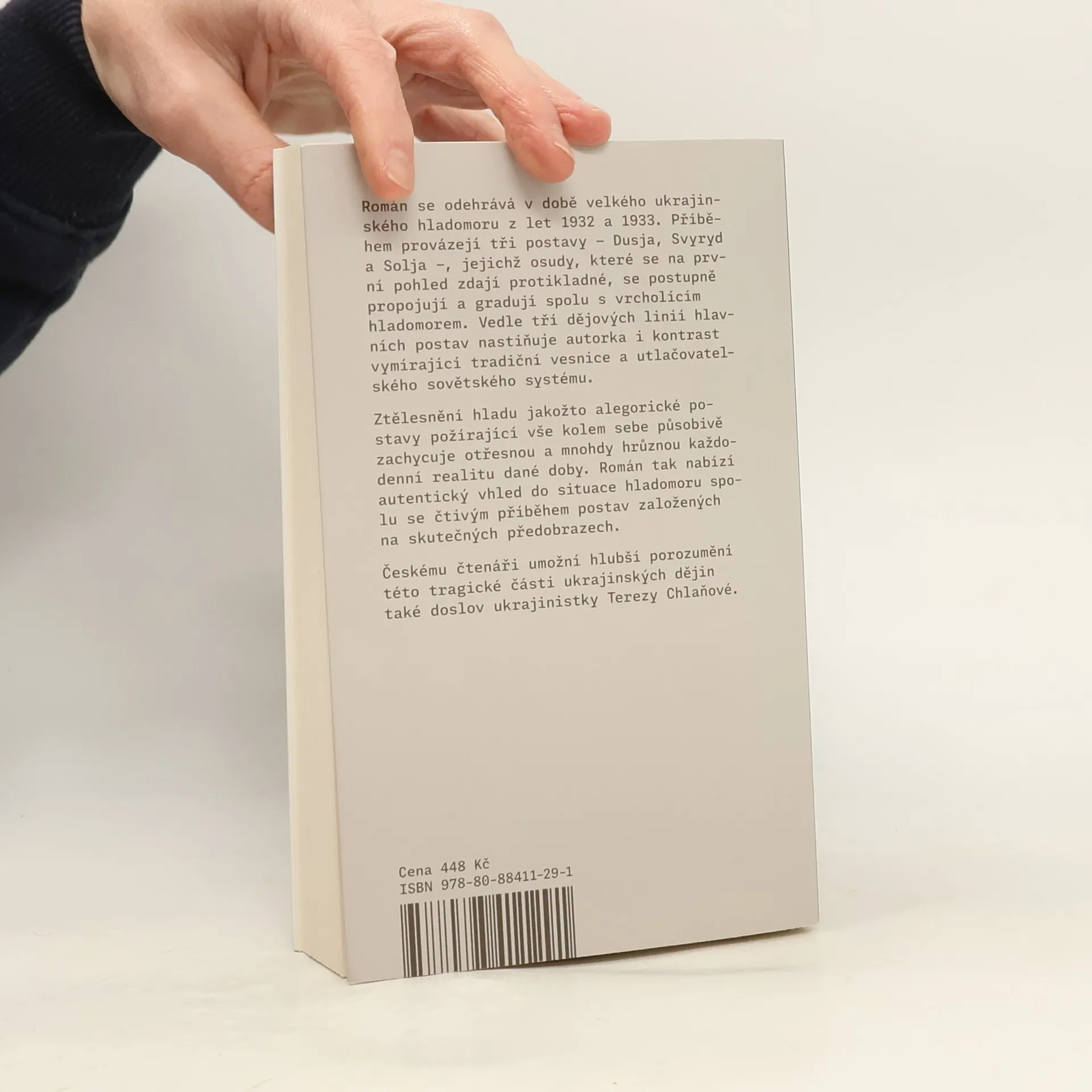 Román se odehrává v době velkého ukrajinského hladomoru z let 1932 a 1933. Příběhem provázejí tři postavy – Dusja, Svyryd a Solja –, jejichž osudy, které se na první pohled zdají protikladné, se postupně propojují a gradují spolu s vrcholícím hladomorem. Vedle tří dějových linií hlavních postav nastiňuje autorka i kontrast vymírající tradiční vesnice a utlačovatelského sovětského systému. Ztělesnění hladu jakožto alegorické postavy požírající vše kolem sebe působivě zachycuje otřesnou a mnohdy hrůznou každodenní realitu dané doby. Román tak nabízí autentický vhled do situace hladomoru spolu se čtivým příběhem postav založených na skutečných předobrazech. Českému čtenáři umožní hlubší porozumění této tragické části ukrajinských dějin také doslov ukrajinistky Terezy Chlaňové.