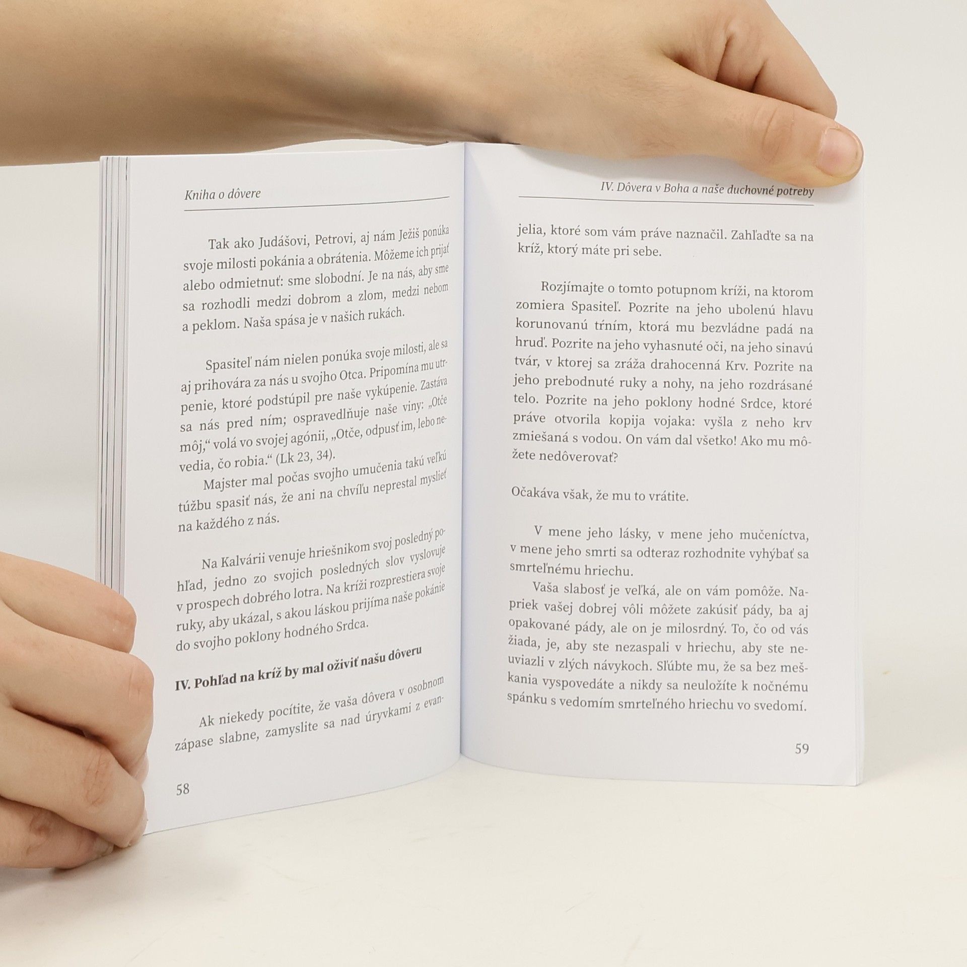Kniha o dôvere, ktorej témou – ako napovedá samotný názov – je čnosť dôvery, vyšla prvýkrát vo francúzskom origináli v roku 1921. Pravdivo pritom môžeme konštatovať, že dnes je kniha aktuálnejšia, než kedykoľvek predtým. V posledných rokoch sme totiž konfrontovaní s narastajúcou neistotou z budúcnosti, či už materiálnej, alebo duchovnej. Príliš ľahko sa necháme znechutiť zlými správami, ktoré sa na nás valia zo všetkých strán a zabúdame, že Pánom dejín je všemohúci, vševediaci a dobrý Boh. Ani v osobných ťažkostiach mnohí nevolajú k Pánovi, ako to od nich očakáva, aby im pomohol. Nikdy sa na Boha neobracajú menej, než práve v čase skúšky. „Ja som s vami po všetky dni až do skončenia sveta,“ (Mt 28, 20) povedal náš Spasiteľ. Kiež mu nikdy neprestaneme dôverovať.