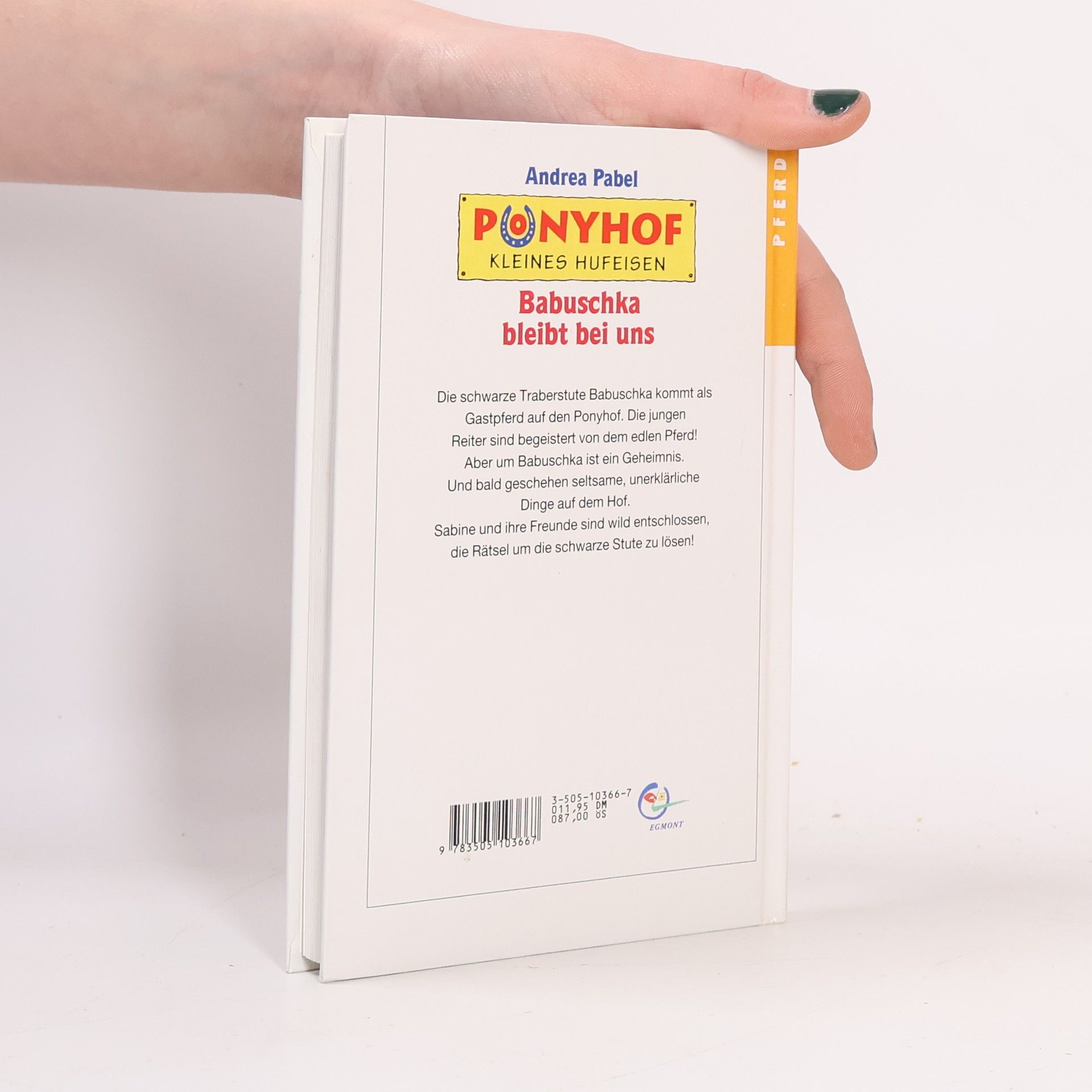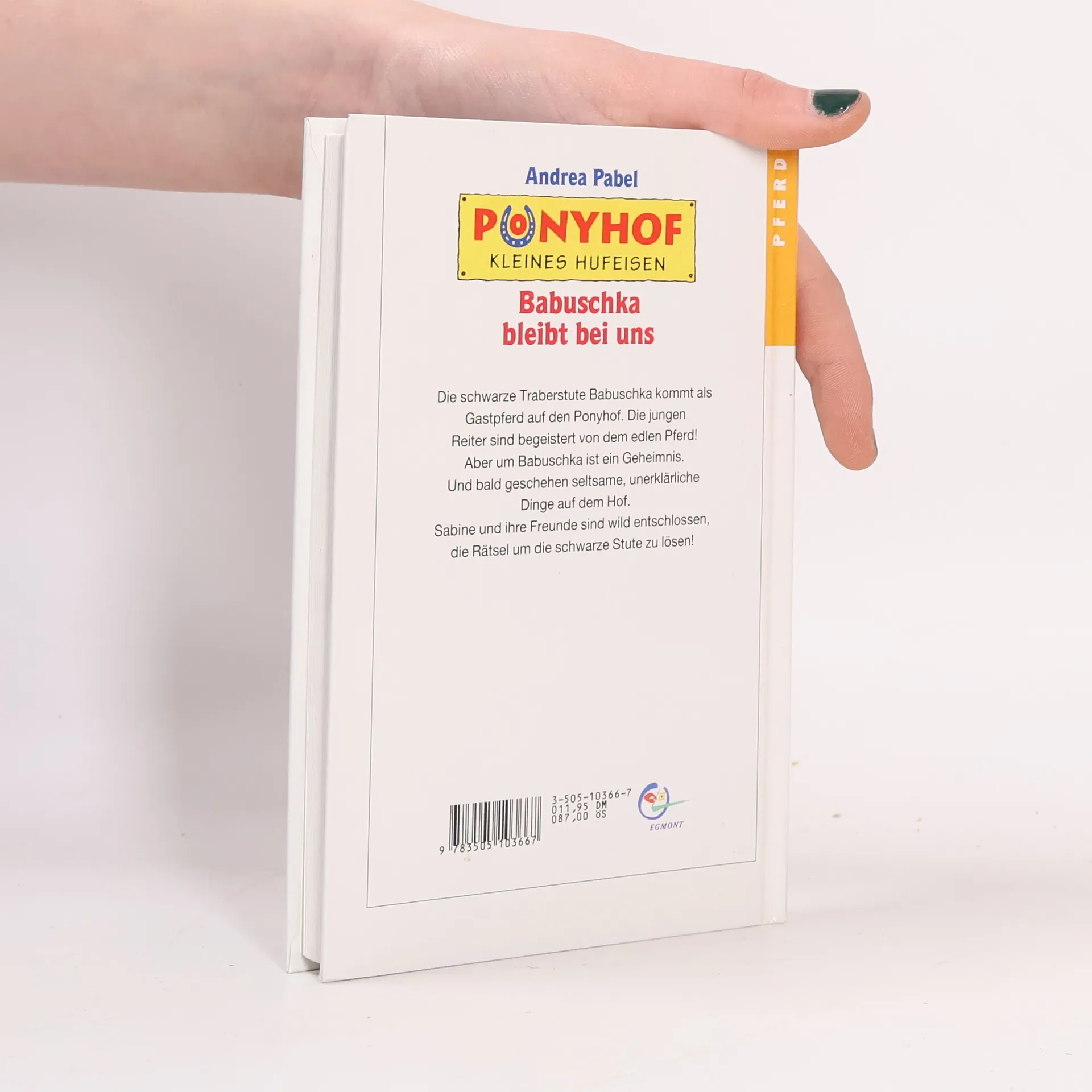 Die schwarze Traberstute Babuschka kommt als Gastpferd auf den Ponyhof und begeistert die jungen Reiter. Doch um sie ranken sich Geheimnisse, und es geschehen unerklärliche Dinge. Sabine und ihre Freunde sind entschlossen, die Rätsel um die schwarze Stute zu lösen!