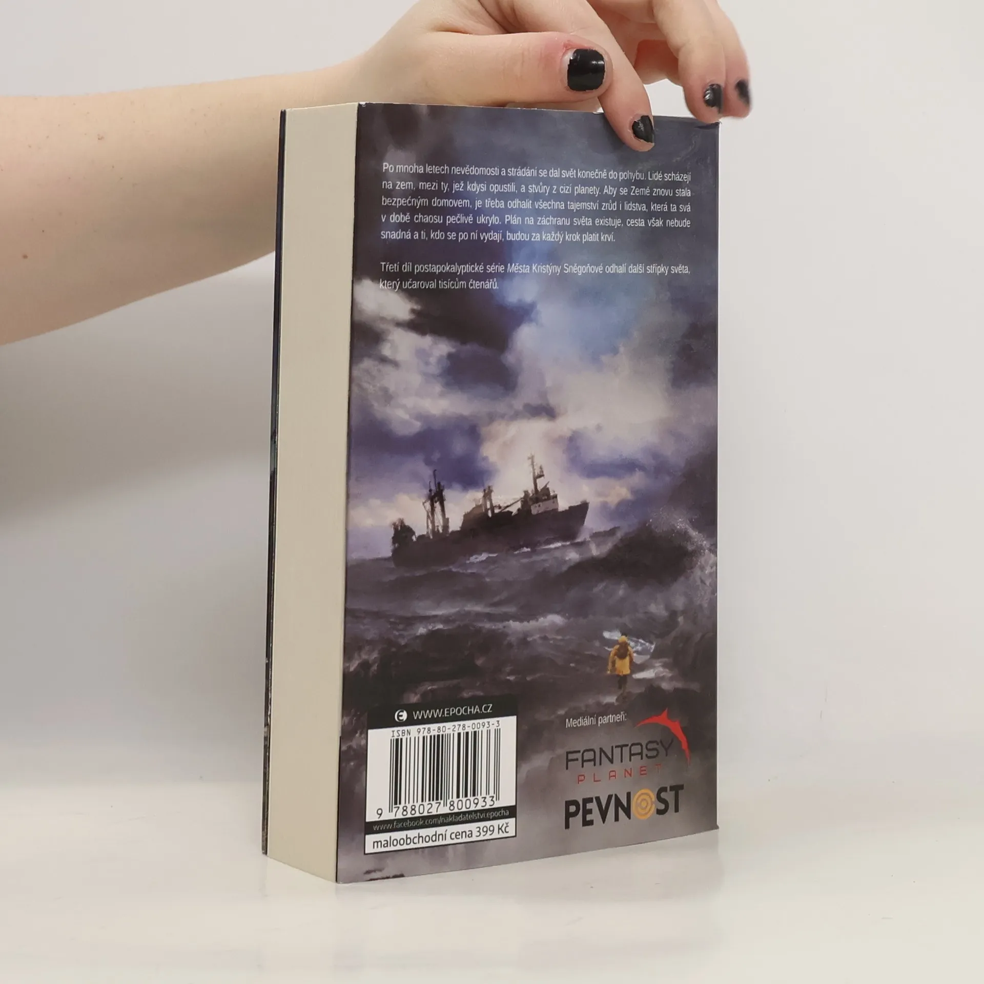 Po mnoha letech nevědomosti a strádání se dal svět konečně do pohybu. Lidé schází na zem, mezi ty, které kdysi opustili, a stvůry z cizí planety. Aby se Země znovu stala bezpečným domovem, je třeba odhalit všechna tajemství zrůd i lidstva, které ta svá v době chaosu pečlivě ukrylo. Plán na záchranu světa existuje, cesta však nebude snadná a ti, kdo se po ní vydají, budou za každý krok platit krví. Třetí díl postapokalyptické série Města Kristýny Sněgoňové odhalí další střípky světa, který učaroval tisícům čtenářů.